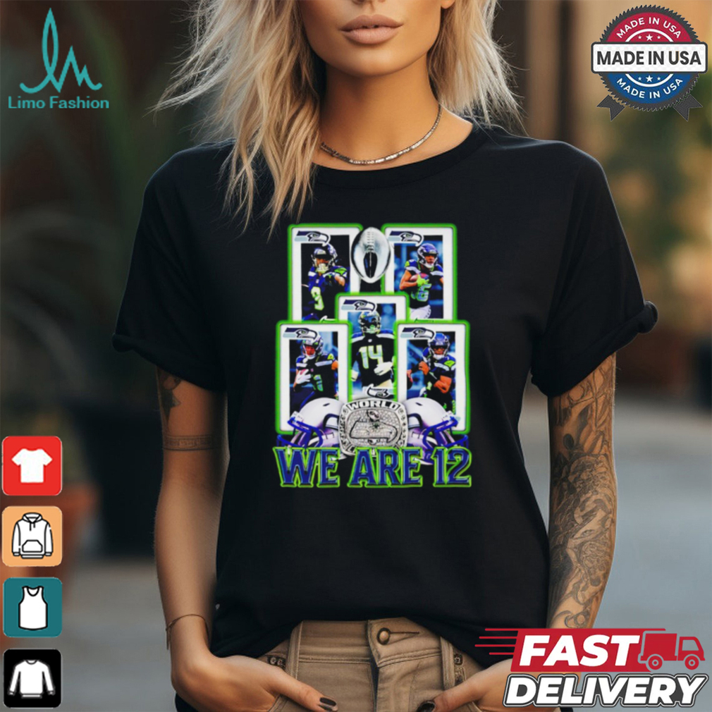 You can be happy in the midst of the biggest Seahawks Seattle football players we are 12 NFL Shirt . Just make peace with the concept that the way you feel no longer reflects what’s going on around you. Waltz to your own tune, like one of those dudes on their skateboards, who wear headphones and have clearly detached themselves. Of course continue to make only supremely rational choices and keep dedicating yourself to all things that help build a successful life, but you are no longer dependent on having finished before you are allowed to be happy. I’ve been at it for almost ten years now, and it has been a triumph.