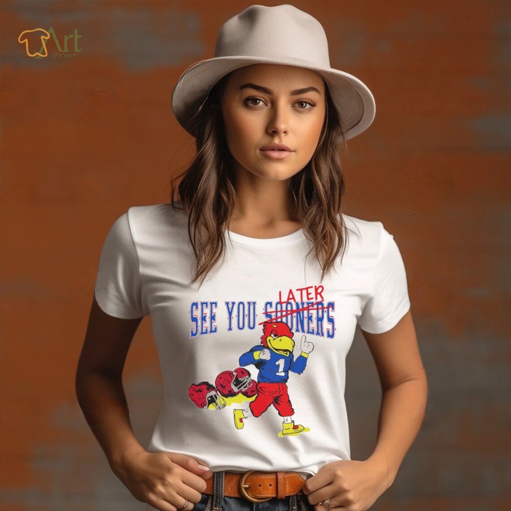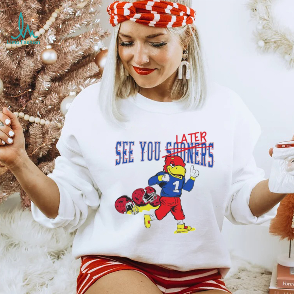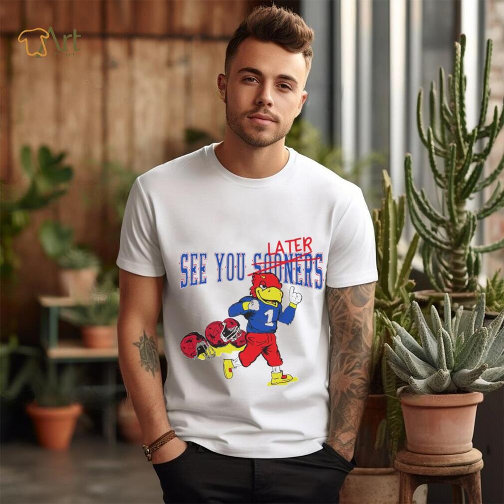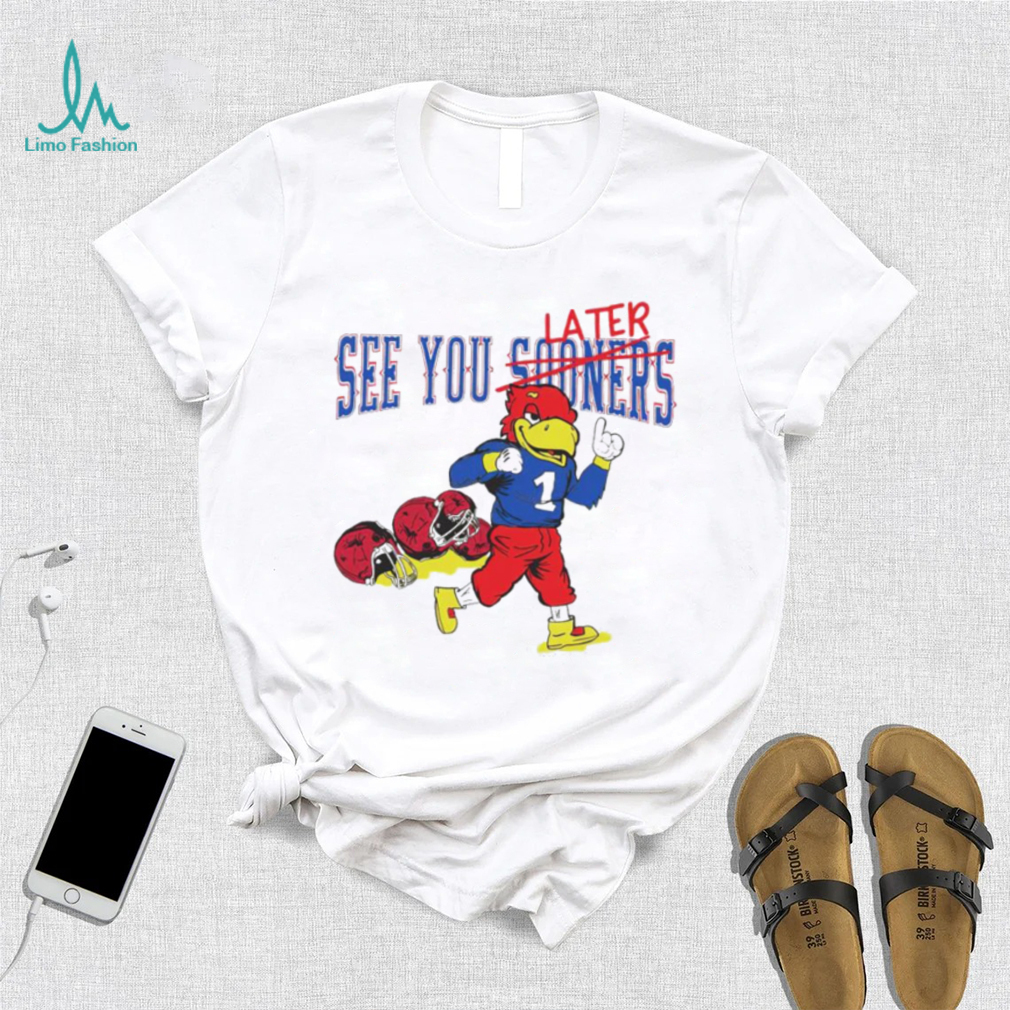 ()See you sooners later Kansas Jayhawks fottball mascot shirt