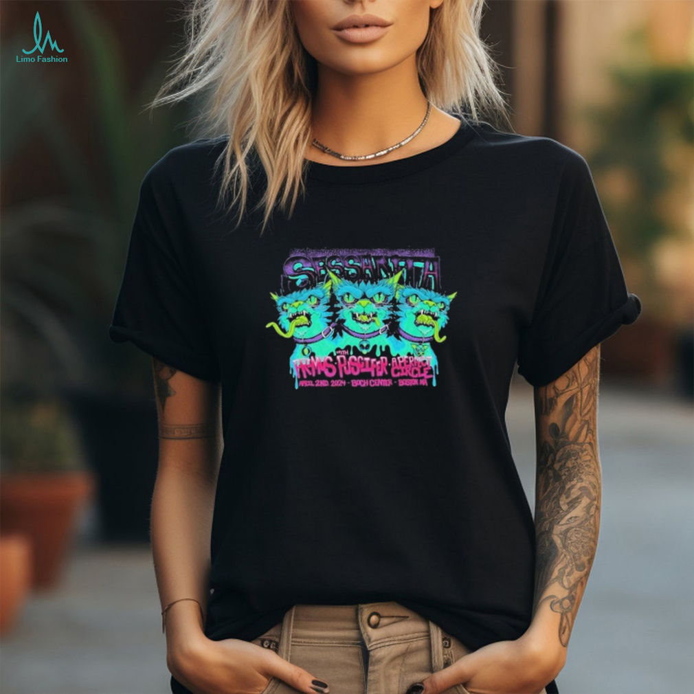 The second time (a couple of months later) she Sessanta with Primus, Puscifer, A Perfect Circle April 2nd, 2024 at Boch Center in Boston, MA A 60th Birthday Celebration For Maynard James Keenan Shirt back with no collar. The elastic must have broken again, and she left it in situ. We waited for several days, hoping she would bring it back, but she didn’t. So we went and bought another collar and put it on. This must have jogged her memory, and within a couple of hours she came right to the back door again – holding the old collar in her mouth.