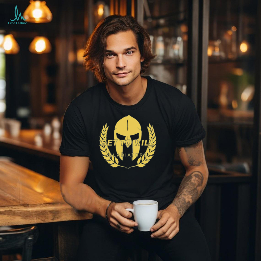 Mascot. According to Wikipedia the 12 most common team names in college athletics (across divisions) of Set to kill Gladiators logo shirt of four-year college teams (exclusive of names with attached adjectives such as “Blue”, “Golden”, “Flying” or “Fighting”): Eagles (76), Tigers (46), Bulldogs (40), Panthers (33), Knights (32), Lions (32), Bears (30), Hawks (28), Cougars (27), Pioneers (28), Warriors (27) and Wildcats (27). So maybe you want something unique. There’s the Arkansas State Red Wolves, New Orleans Saints, Nashville Titans, Arkansas Razorbacks, Texas Longhorns, Louisiana Ragin’ Cajuns, etc.