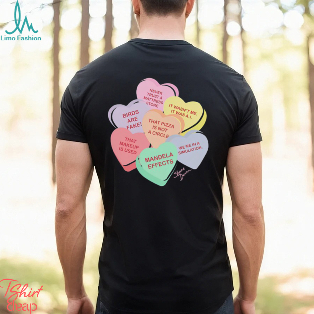 The days before Christmas a log is collected and kids are in charge of Shane Dawson Conspiracy Candy Heart Shirt. It can vary between nuts, water or fresh fruits that later mysteriously disappear when the children aren’t there. The procedure of “cagar el Tió” is very simple, the family gathers around the Tió de Nadal while the children sing the song of the Caga Tió, they are in charge of hitting him with a stick so that he starts to “shit” gifts, hence the name “Caga Tió” or “hacer cagar al Tió”. At the end of the song, kids remove the blanket and pick up the gifts with great enthusiasm! However, sometimes the Tió (log) is more eager to shit, so to give him a little more time, the children go to another room to sing or recite Christmas poems while the parents help the Tió by covering him again with the blanket.