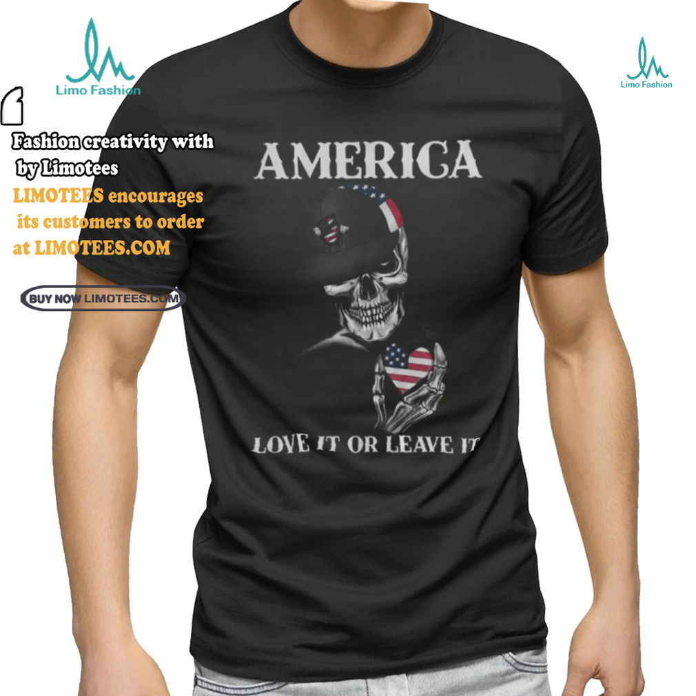 Skull America Love It Or Leave It shirt. Categories of this T-shirt is teejeep, Skull America Love It Or Leave It shirt from Dadyshirt ✓ Unique designs ✓ Large assortment ✓ Comfortable ✓ High-quality ✓ Easy to care for ✓ Available in a range of colours and styles for men, women ✓ Shop now ✓