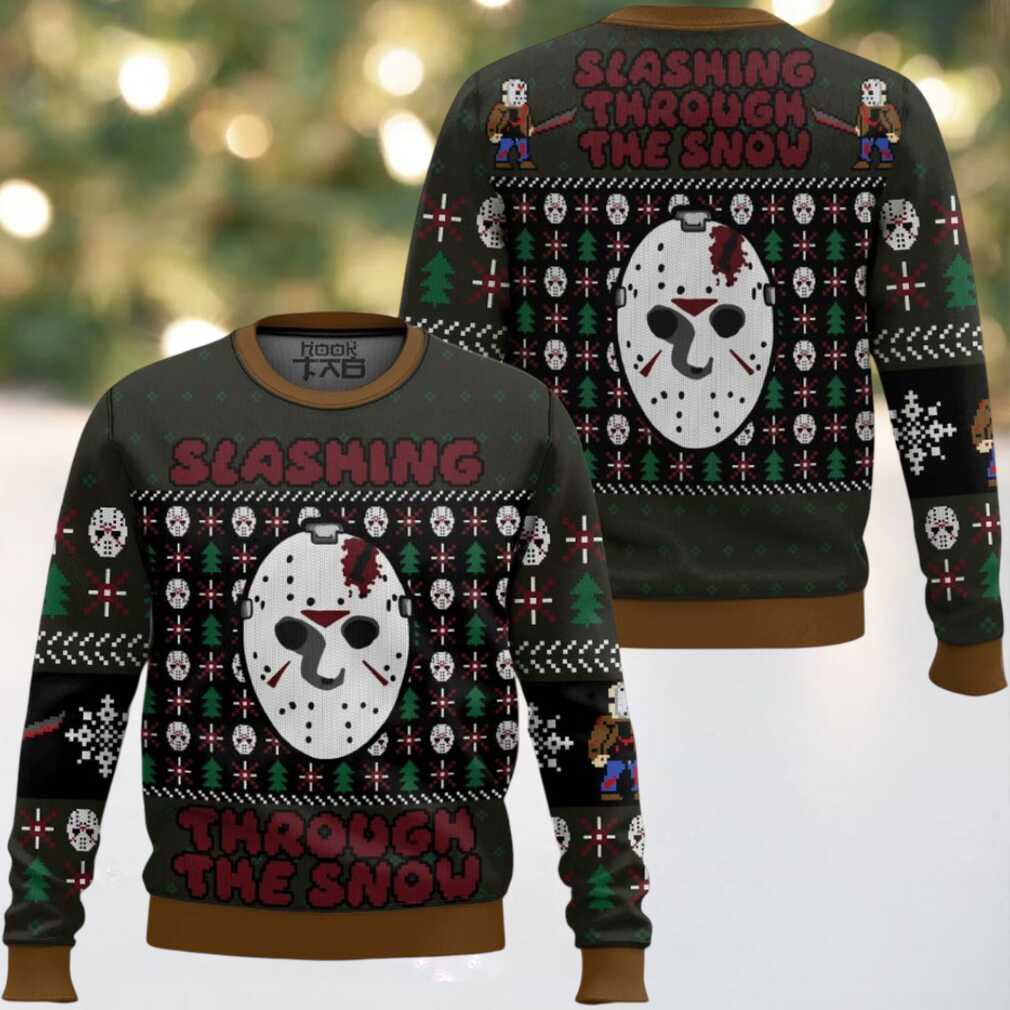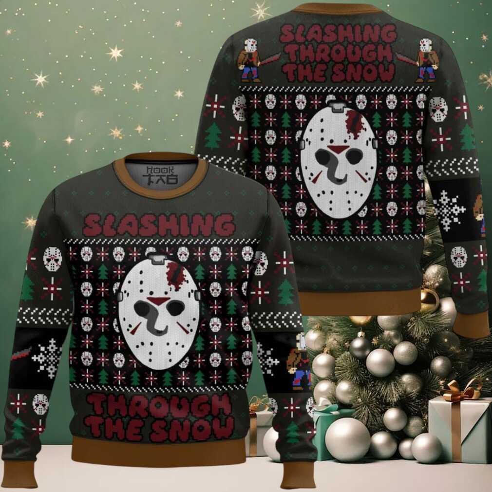 What Makes This Slashing Through The Snow Friday The 13th Ugly Christmas Sweater Epic