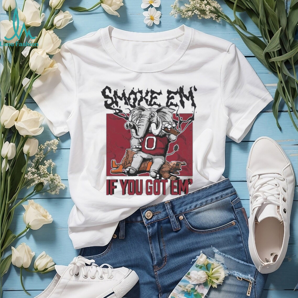 But with the spending you will increase the production of Smoke ‘Em Elephant Football 2023 Shirt. Either way, in the macroeconomy, “Spending” is what leads to wealth production, “not spending” reduces wealth production and does nothing to increase money saved. That money saved will exist whether used for spending or not. So on either front, if the goal is to increase savings, and increase the net production of wealth, “not spending” is the wrong advice. “Not spending” will not increase the savings that is the preservation of investment, and it will likely not increase the net production of wealth, in fact it is more likely to decrease both. In the macro economy, “not spending” is more likely to have negative effect on the production of wealth and standard of living, than a positive one.