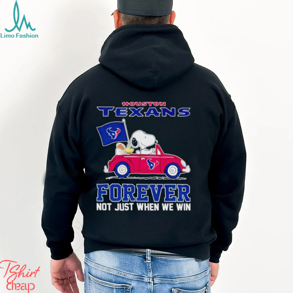 Snoopy and Woodstock driving car Houston Texans forever not just when we win shirt hoodie, tank top, sweater and long sleeve t-shirt
