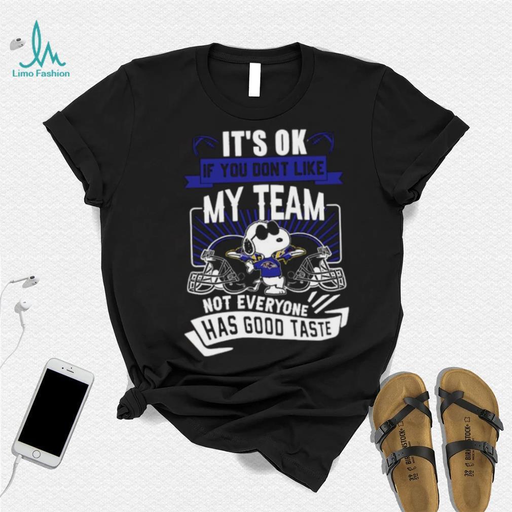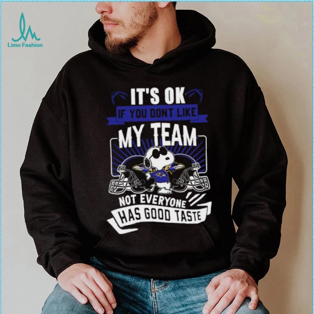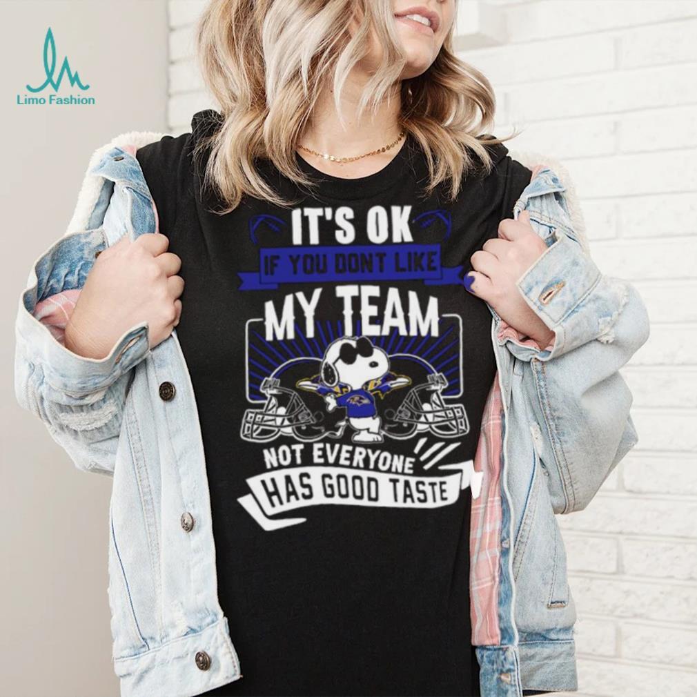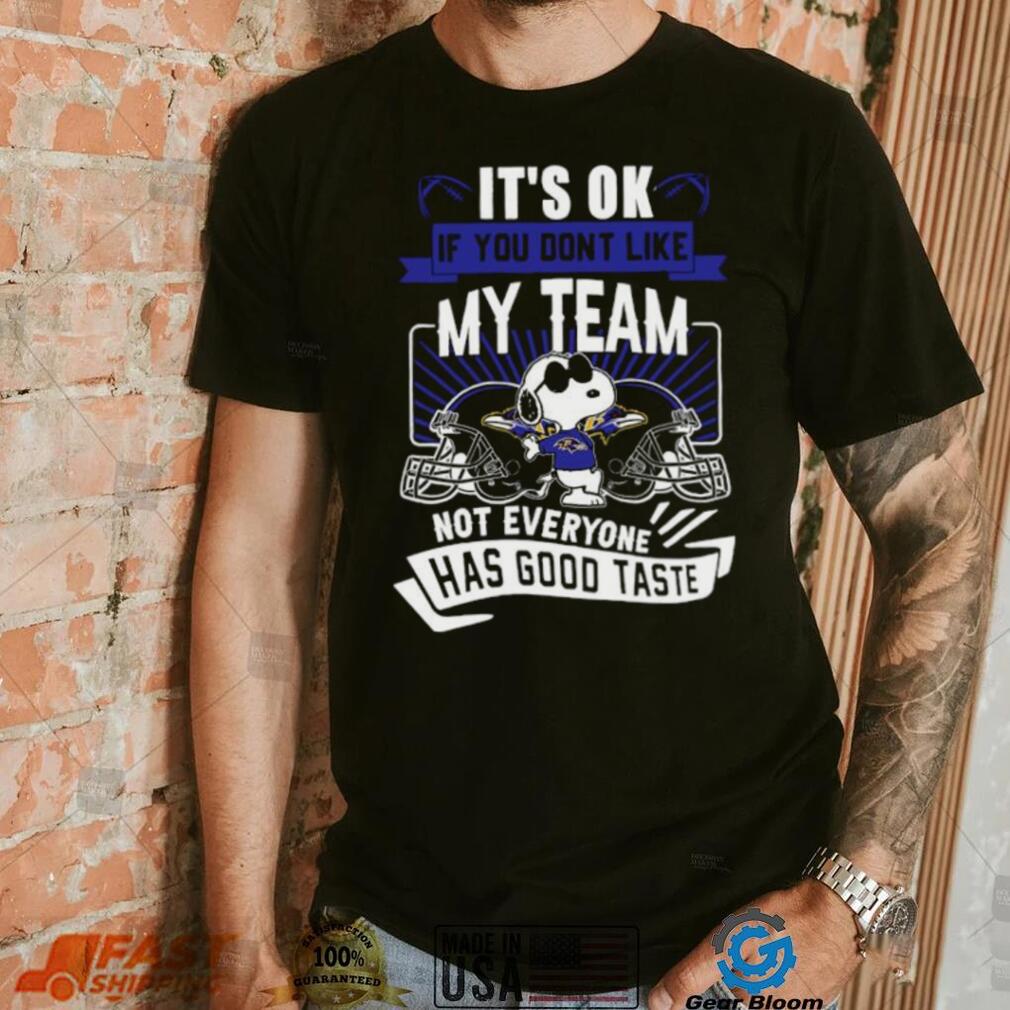 ()Mental Aspects: Another part of why NFL runner-ups don’t make it back to playoffs clearly seems to be mental, however, and it’s hard to say how the Falcons will cope with getting that close to the championship and having it slip through their fingers, especially in such a Snoopy Baltimore Ravens it’s ok if you don’t like my team not everyone has good taste shirt fashion. There are players like second-year LB Vic Beasley (who had 0 tackles, and could have intercepted the Pats in OT to stop their game-ending drive, but only got one hand on the football and tipped it away) who will no doubt have some negativity and frustration—both external and internal—to deal with after this game. There’s also a new Offensive Coordinator, as Kyle Shanahan has left to take the head coaching job in San Francisco. It usually takes a couple of years for a new OC to really get the freedom and familiarity with his players to institute major changes, so we can expect the Falcons O to look very similar to this season’s, with perhaps a couple of Snoopy Baltimore Ravens it’s ok if you don’t like my team not everyone has good taste shirt installed by new OC Steve Sarkisian. No one rocks the boat too hard first year, however, so not too much should change.