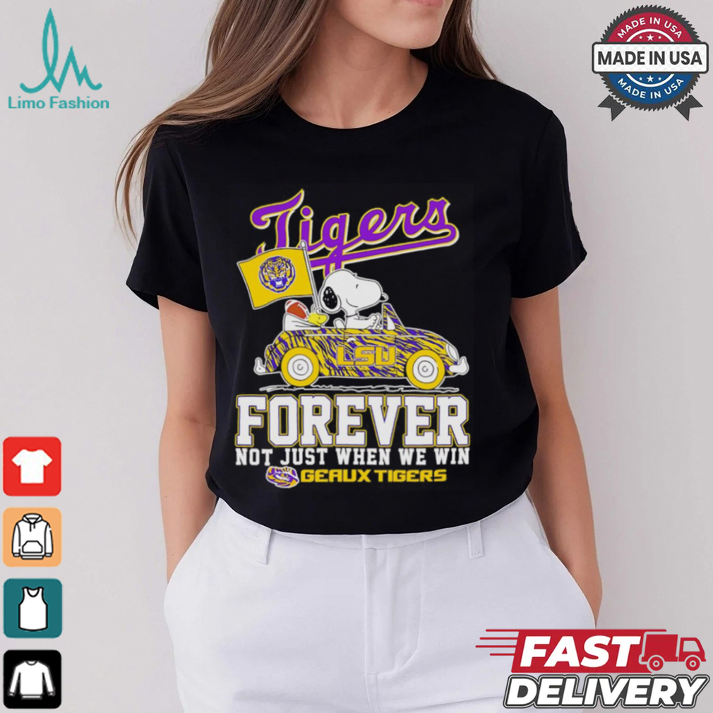 Snoopy driving car LSU Tigers forever not just when we win shirt hoodie, tank top, sweater and long sleeve t-shirt