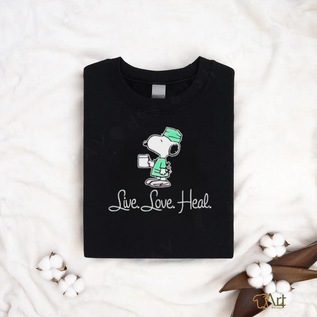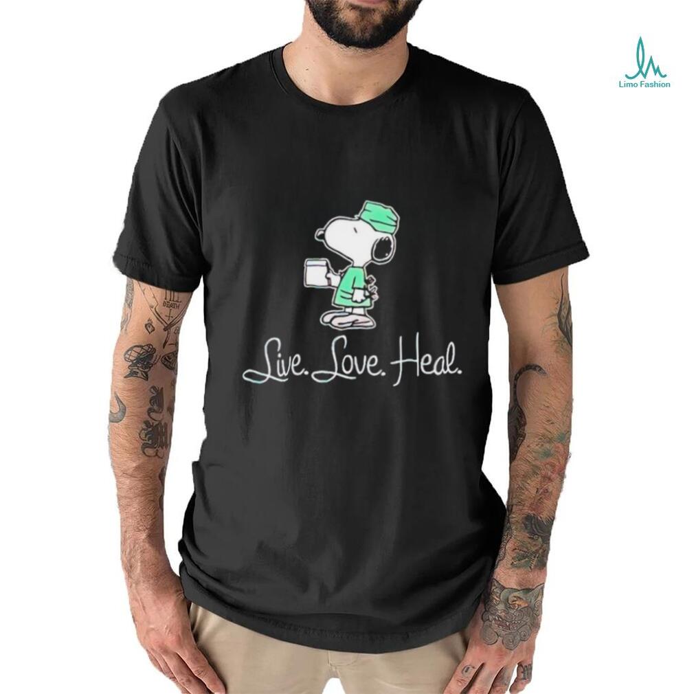 ()Snoopy Live Love Heal shirt. Categories of this T-shirt is teejeep, Snoopy Live Love Heal shirt from Dadyshirt ✓ Unique designs ✓ Large assortment ✓ Comfortable ✓ High-quality ✓ Easy to care for ✓ Available in a range of colours and styles for men, women ✓ Shop now ✓