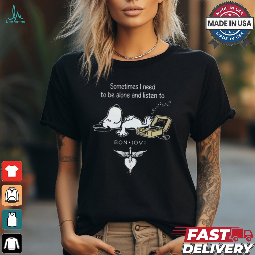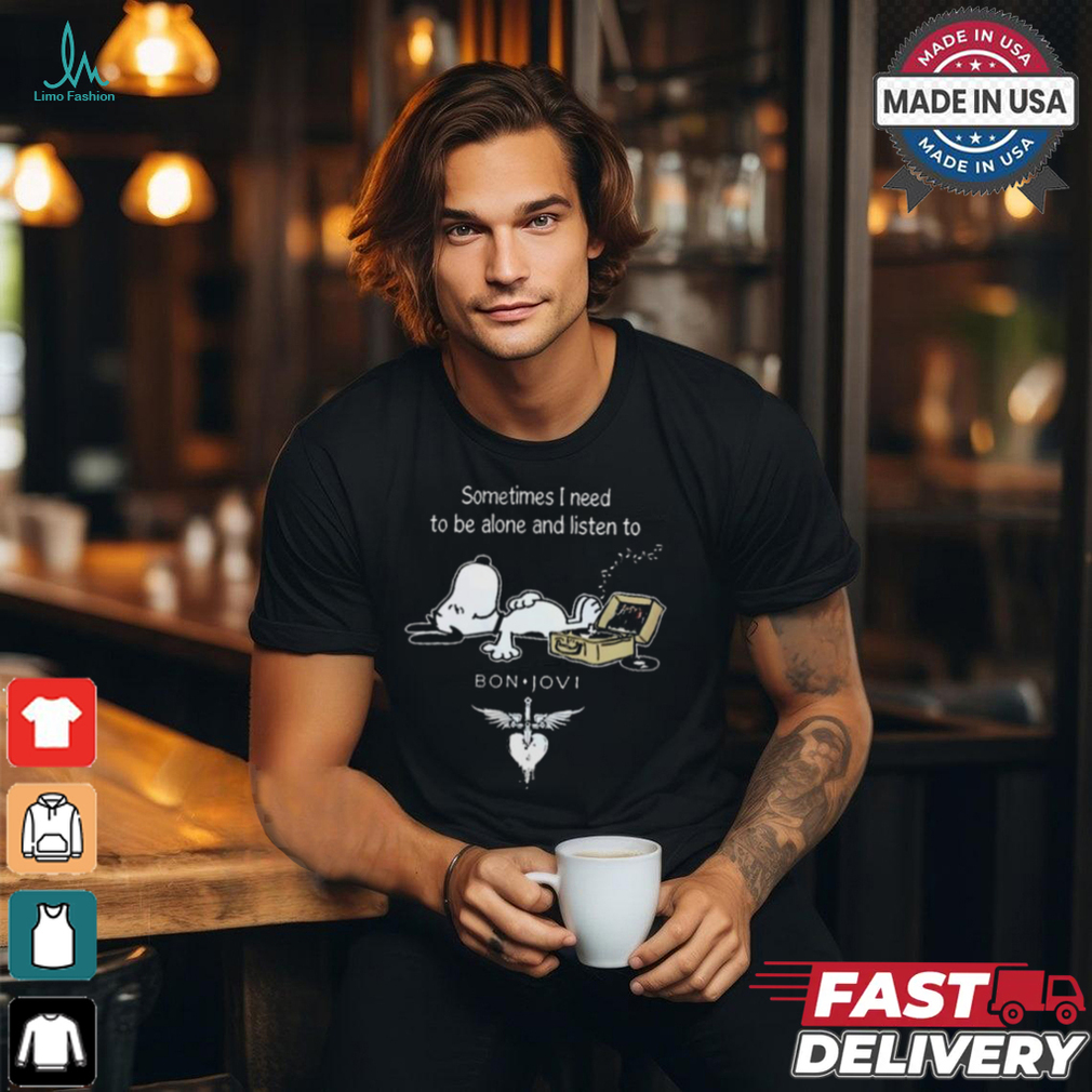 This point is for those who feel unlucky all the Snoopy Sometimes I Need To Be Alone And Listen To Bon Jovi Logo shirt . If you view luck as something that can be defined in definite terms and quantity (like amount of wealth), then life is certainly unfair. However, if you ignore where you started in the beginning of your life, throughout your life time, it is very statistically likely that your luck and lack of luck will balance out in the long term. (This is a general case, however.) In fact, in the long run, life will likely give you what you deserve, therefore, it is up to you to find out what you want and try to achieve your goals.