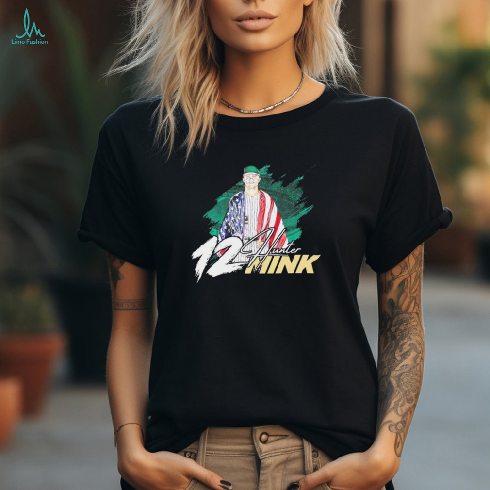 The South Florida Bulls Hunter Mink 12 USA flag shirt to when Beethoven first realizes his deafness and he explains that Theresa would not love him were she to know. He is then shown Theresa’s reaction to his unexplained absence and he realizes that his deafness is the cause of all his problems. Fate explains that if she cures his deafness his music will suffer, as the Muses would not be heard as easily through the everyday sound. He thus withdraws his request. Beethoven is then shown that Theresa would have loved him forever and he becomes very sorrowful. But Fate then offers visions of the countless musicians of the future who would be influenced by Beethoven’s works. As one last, ultimate vision he is allowed to improvise with the musicians of the past and future who were inspired by him. Realizing that removing the hardships from his life would destroy his music, Beethoven informs Fate that he will not change any part of his life.