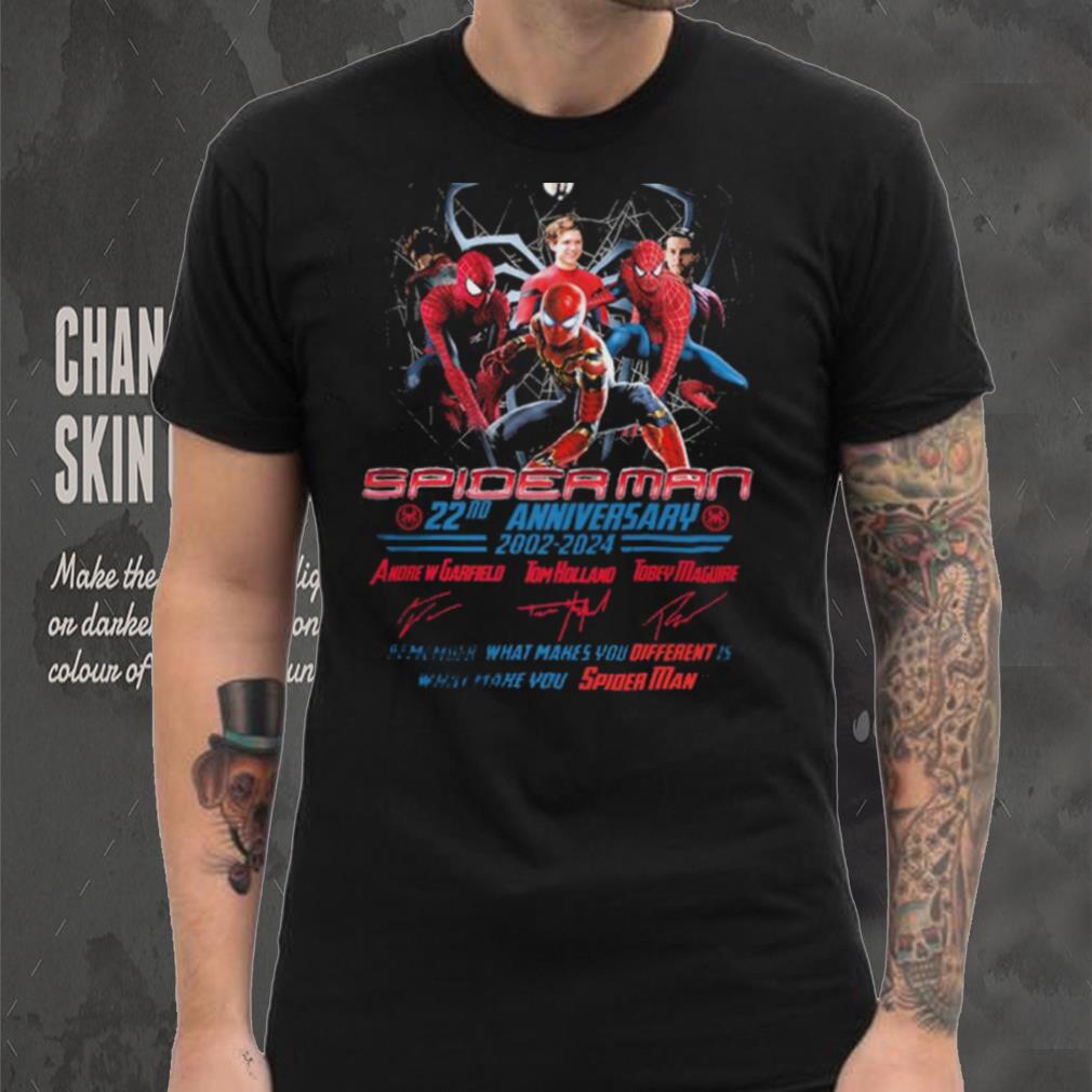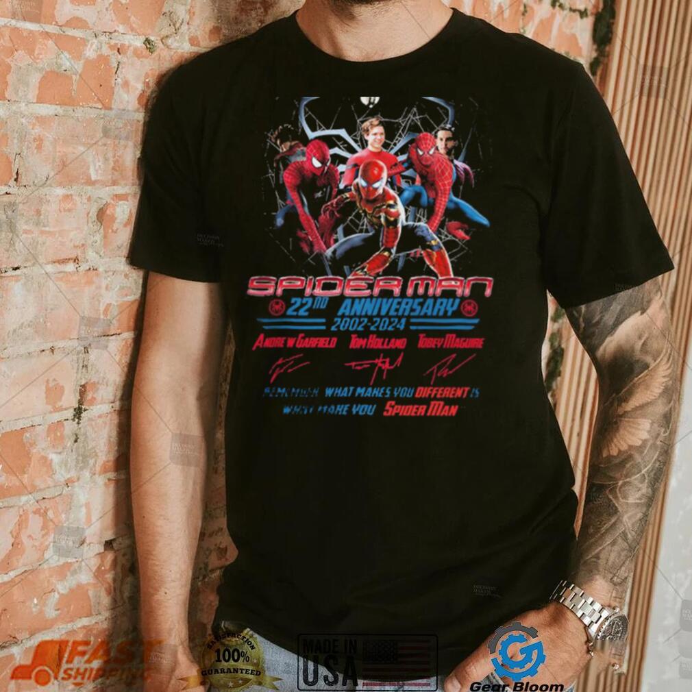 ()Spider Man 22nd Anniversary 2002 2024 Remember What Makes You Different Is What Make You Spider Man Signatures Shirt