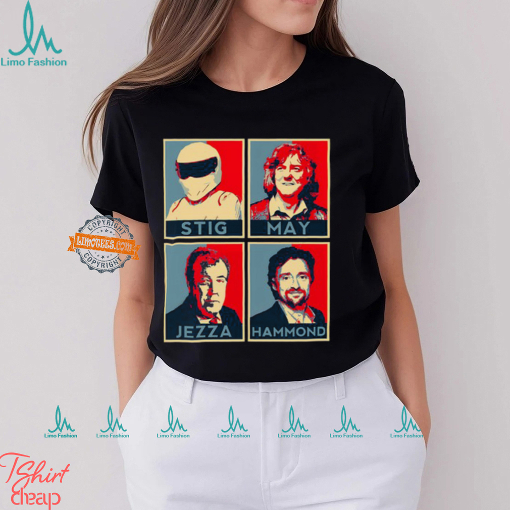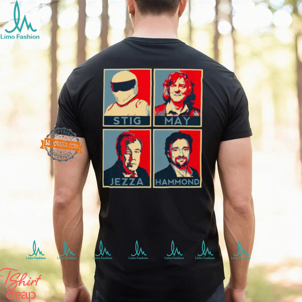 However, this can be the most difficult thing to Stig May Jezza Hammond T Shirt . This will be something that everyone should try to solve themselves. If extraterrestrials are visiting Earth, it would be a great source of knowledge and inspiration for new patents if someone could recover and study some crashed UFOs and, from the national economic point of view, it shouldn’t meter if the patent belongs to the government or to a local private defense company, as long as the royalties come from abroad.