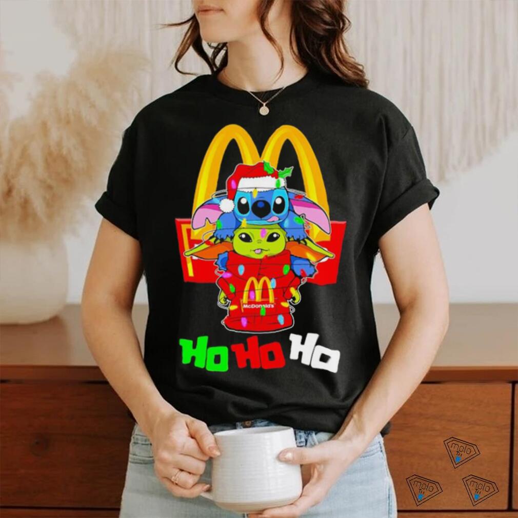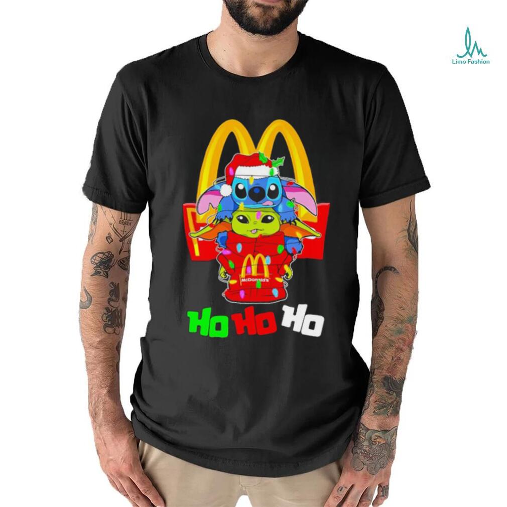 ()Stitch and baby Yoda Mcdonalds ho ho ho Christmas shirt, Hoodie, Sweater, Vneck, Unisex and T-shirt