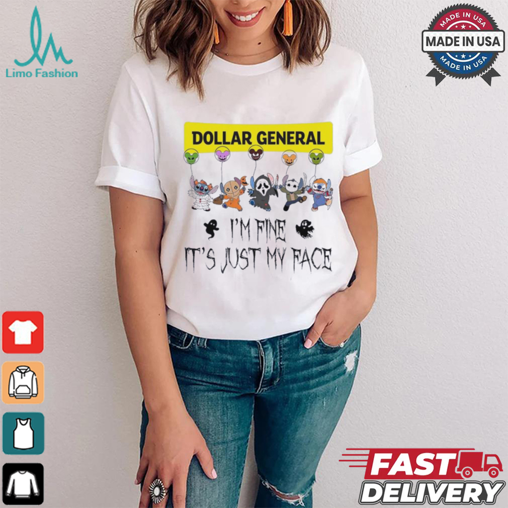 Stitch Horror Character X Dollar General I’m Fine It’s Just My Face Halloween Shirt