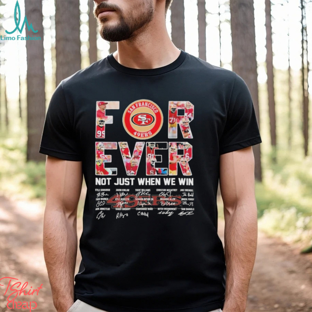 Why? Maybe the owner knows that all of the employees really need those extra wages to make sure that there are presents under the Super Bowl LVIII San Francisco 49Ers Forever Not Just When We Win Signatures Shirt for Christmas morning. Maybe all of the employees bought the presents days ago … using money for the utility bill that means a dark house before New Year’s Eve without some extra hours. Due to location (e.g., next to a very popular mall) it might mean that staying open on Christmas Eve is one of the biggest nights for waitstaff tipping the entire year. Most important of all. What business (in every sense of the word) is it of yours whether a dining establishment remains open on Christmas Eve? Are you a Christian theocrat? Do you advocate government control over commercial enterprises for the purpose of enforcing a given religion’s canonical dictates? If a business owner is paying employees their proper wages for that specific evening (or even holiday), you may wish to simply butt out and find something else to worry about.