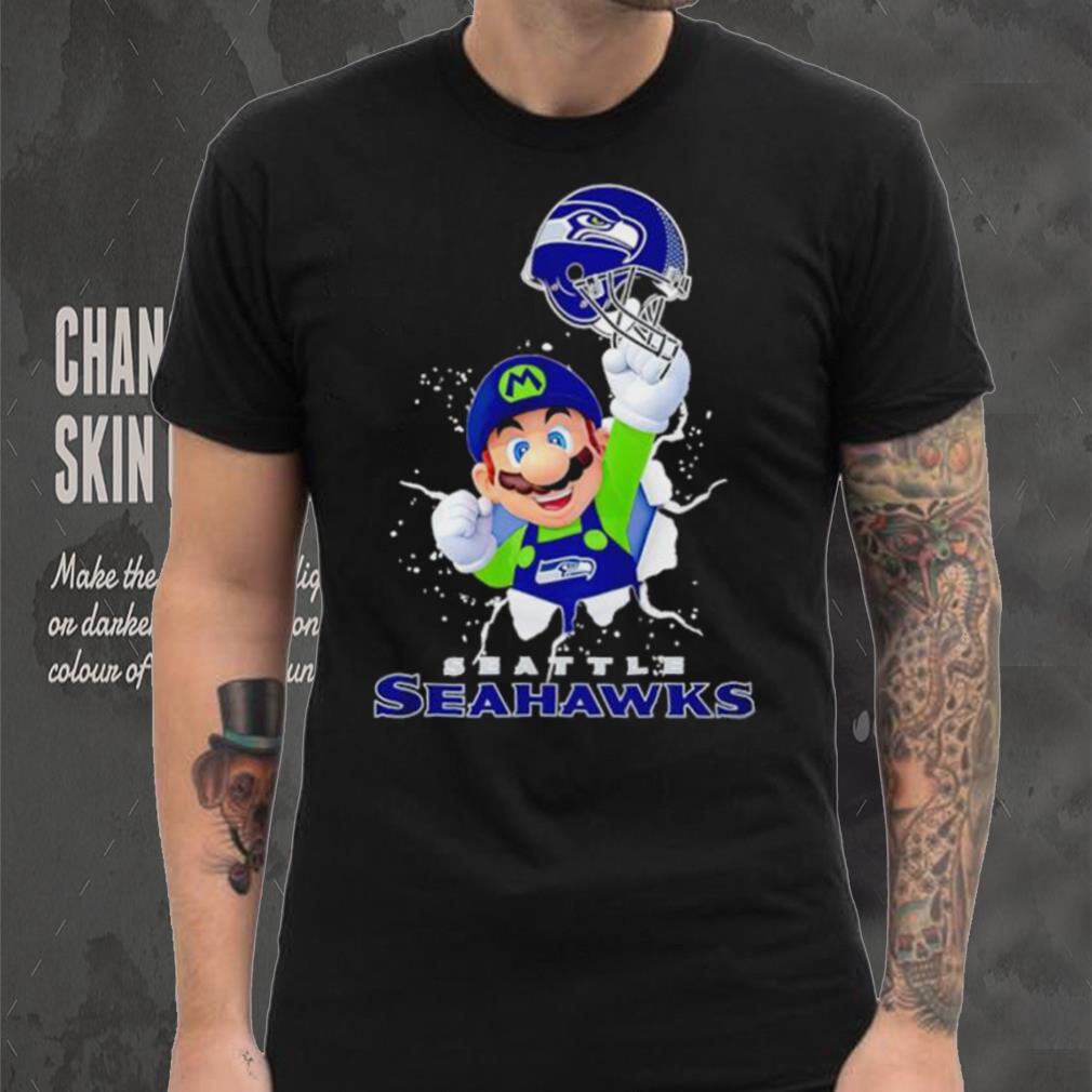 It wasn’t long before the most amazing thing Super Mario x NFL Seattle Seahawks shirt . There was a plaintive meow from the bathroom. Tiger’s sister, Panther, went into the spare room opposite and stood against the far wall. Then she went charging across the floor toward the bathroom and gave a loud squeal just before she hit the door with her side. The door handle went down, Panther hit the door, it opened and out walked Tiger.