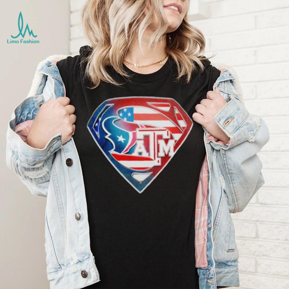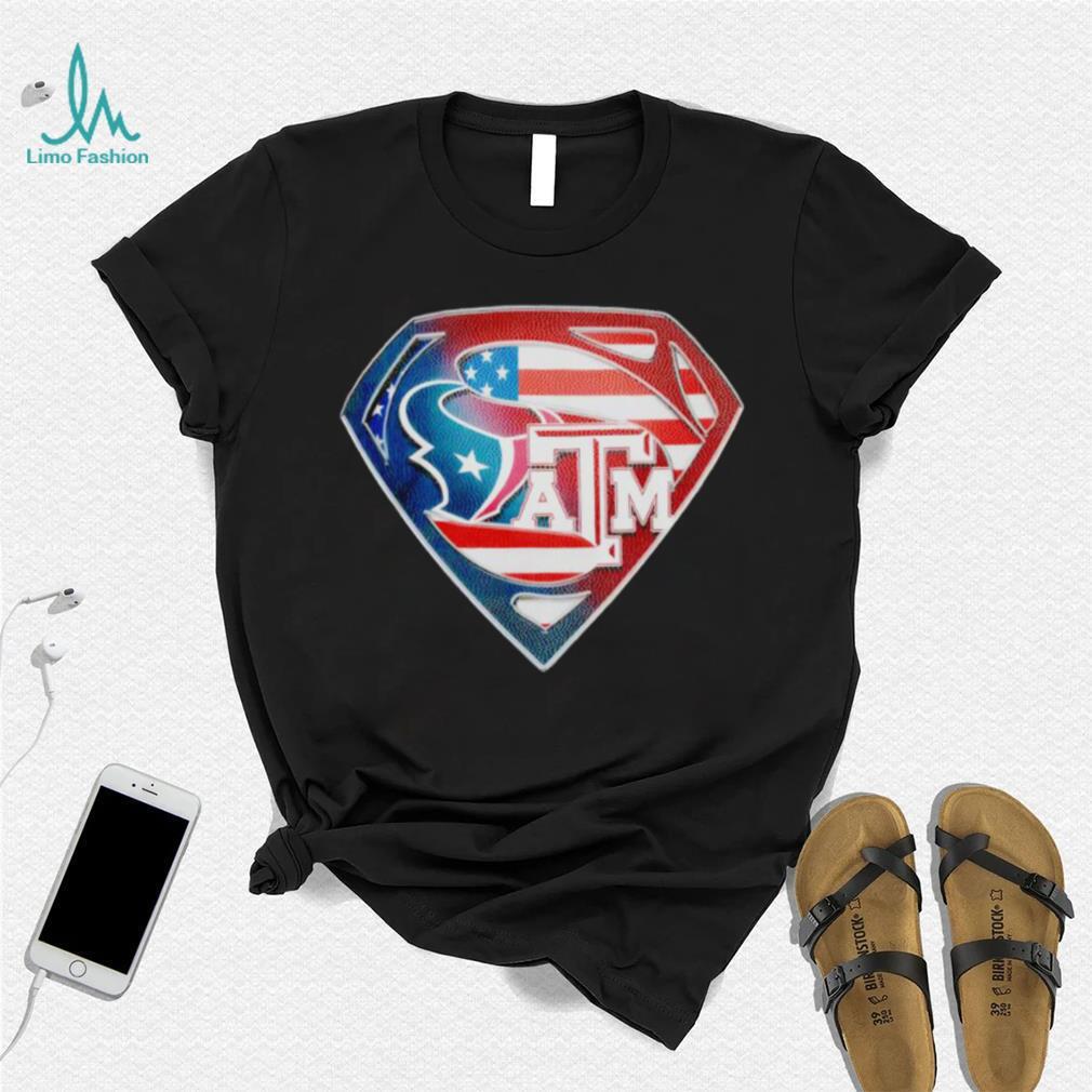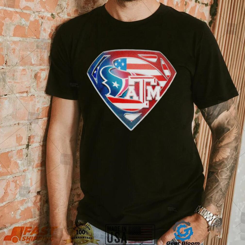 Superman Sports Houston Texans and Texas A&M Logo shirt