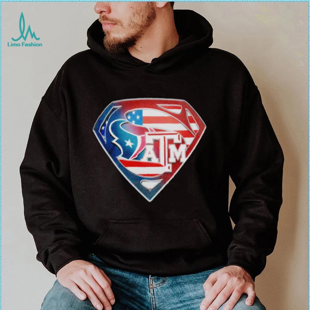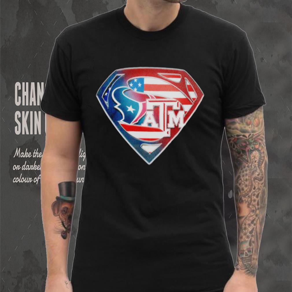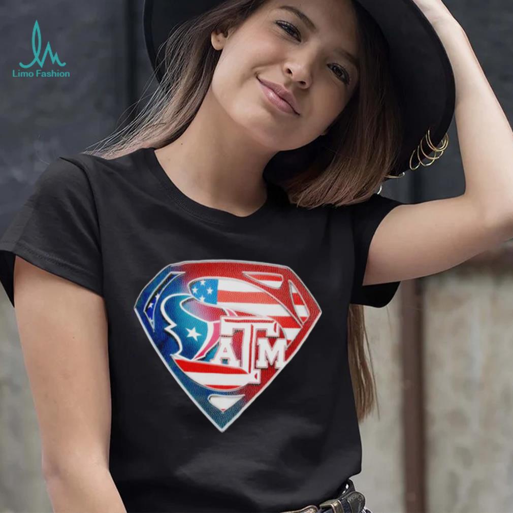 Superman Sports Houston Texans and Texas A&M Logo shirt