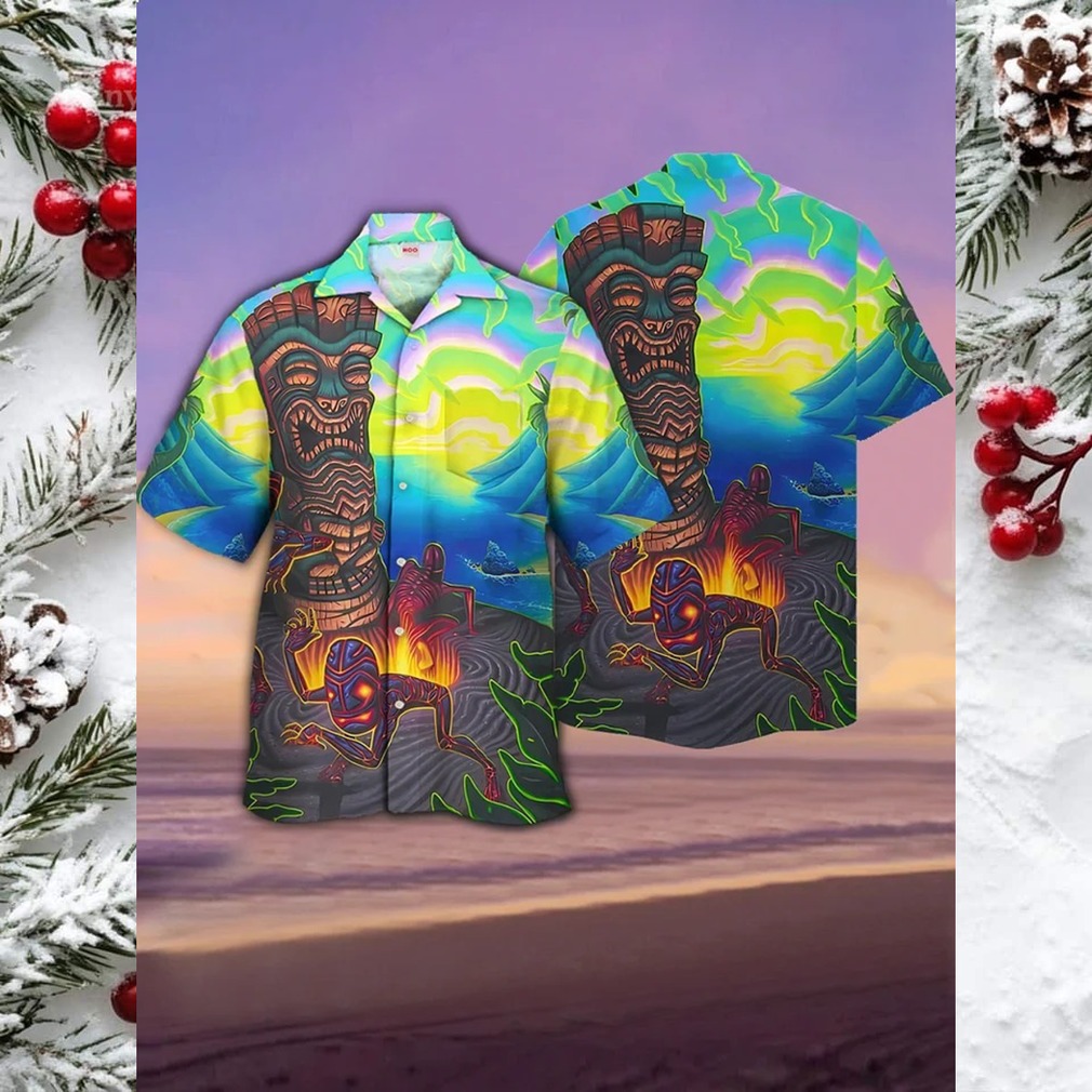 Surreal Volcanic Tiki Print Hawaiian Shirt