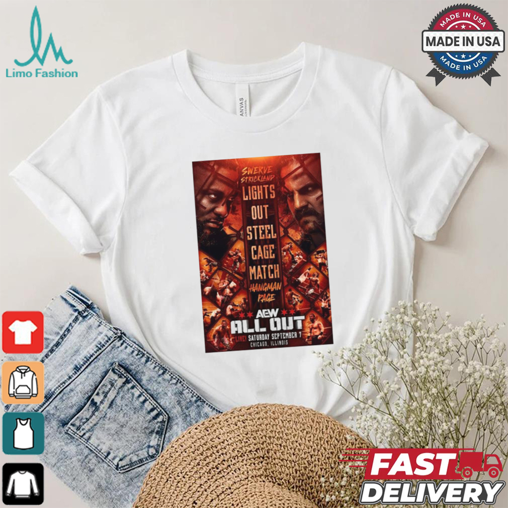 Swerve Strickland Lights Out Steel Cage Match Hangman Adam Page – AEW ALL OUT 2024 Poster t shirt