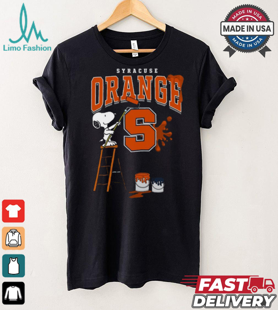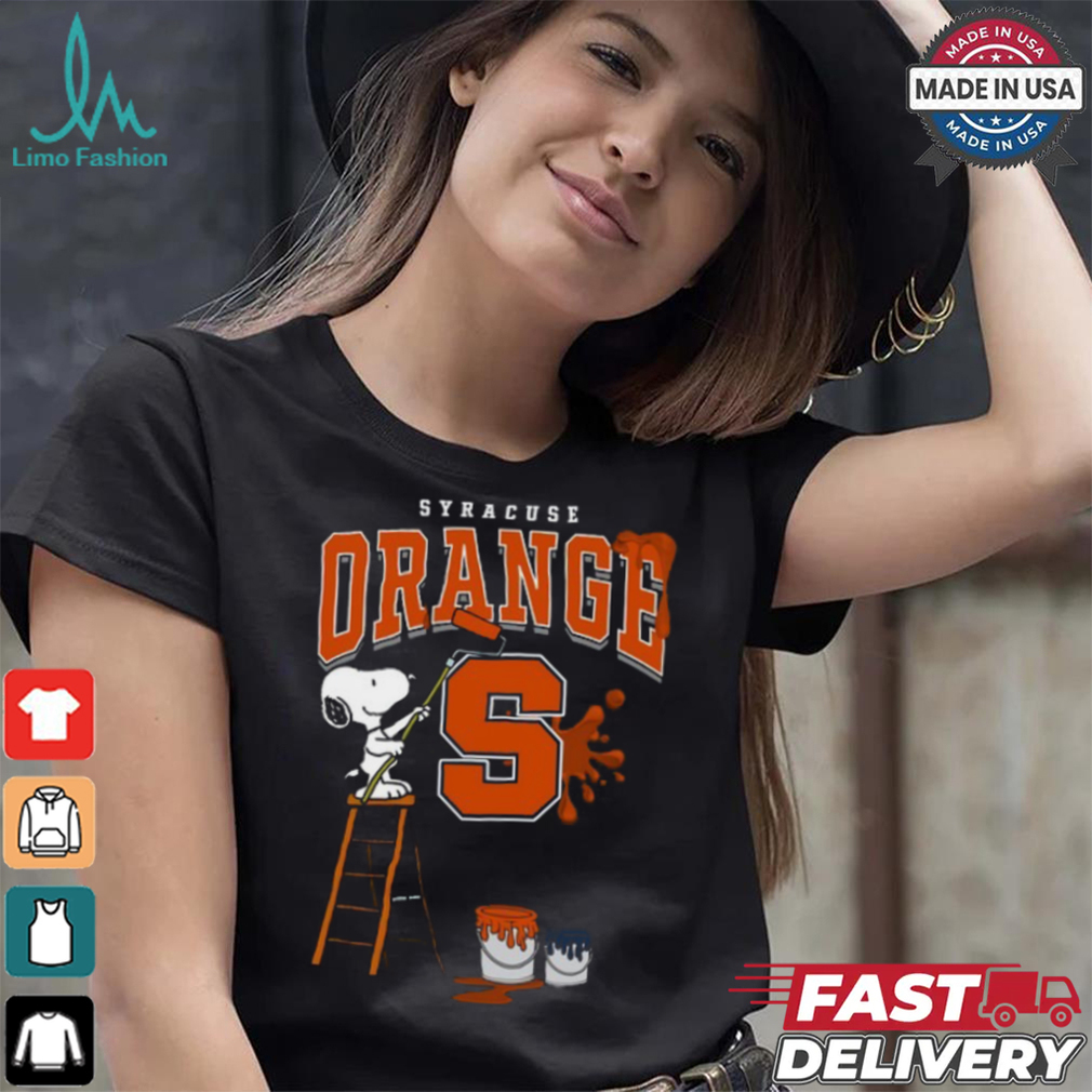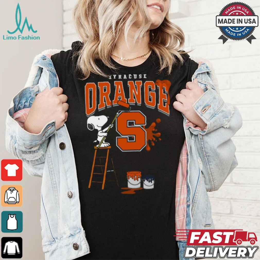 My funny story is when Santa put himself on the naughty list. I travelled the Syracuse Orange Snoopy Painting Shirt home from work a few years ago, and I enjoyed all the Christmas lights and decorations every night. One house had a huge blow up Santa on top of the garage, with his arm raised, waving at you when the wind blew. One day I left work early, and it was still daylight. As I turned the corner on this windy day, I saw Santa was a bit deflated. He was slightly bent over and his arm had fallen down so that his hand was between his legs, and the wind was blowing a bit, and he was gently bobbing up and down, up and down, and he seemed to be enjoying himself entirely too much! I was crying with laughter, and I can never look at Santa again without flashbacks.