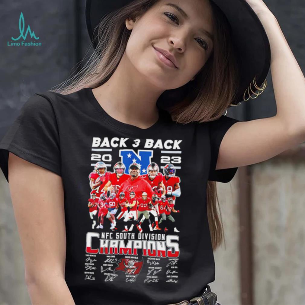 ()Tampa Bay Buccaneers back 3 back NFC South Division Champions signatures logo shirt