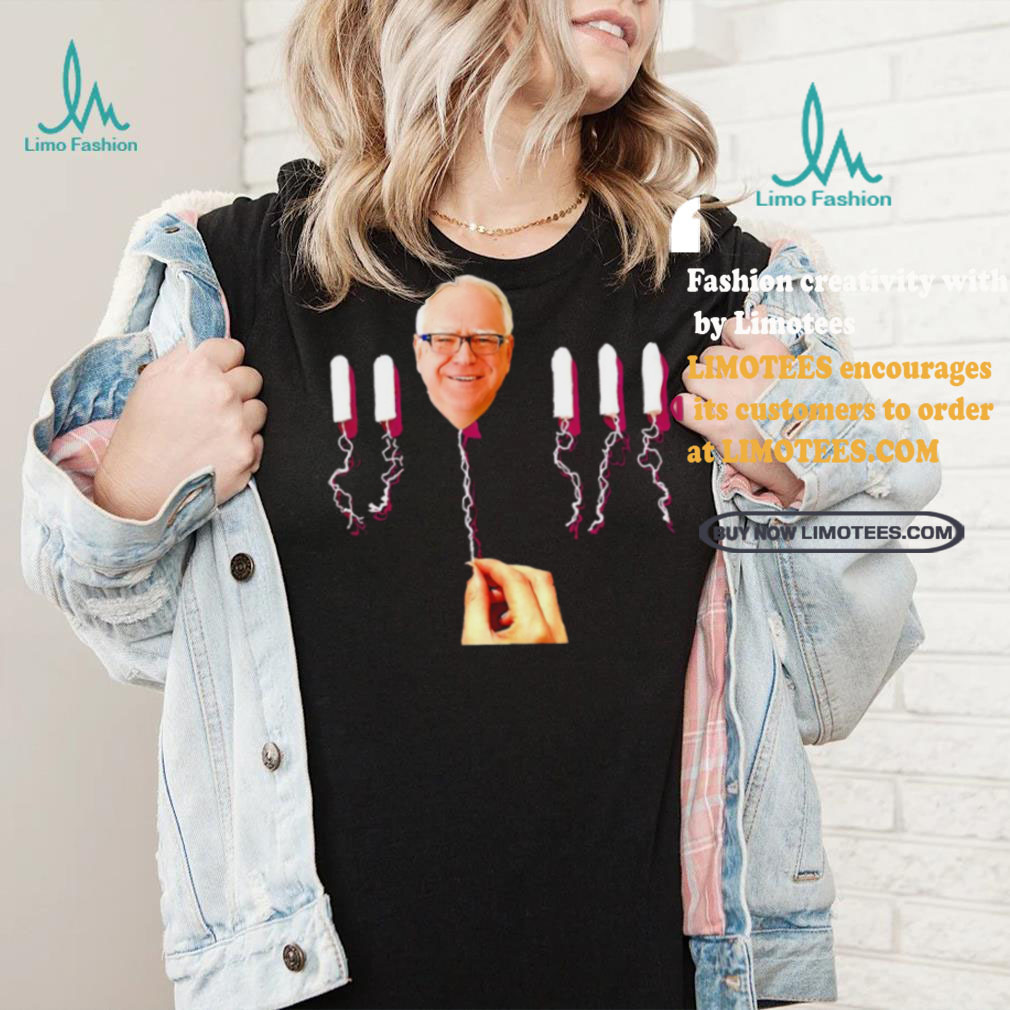 Geography. Pick the local team. If you are in say Miami, congratulations you can be a Dolphins fan and if you want to support teams across several levels, then the Dolphins for the NFL, Miami Hurricane among the power college programs and Florida International Panthers in the so-called Group of 5. If you are in an area not near an NFL team pick a Tampon Tim Walz meme shirt college and could even find enjoyment following a small regional team that plays in Division II or III or Division I FCS. Aesthetic reasons. You like the dark blue and orange combo of the Denver Broncos then that can be your team (also opens up the Boise State Broncos in college football). I’m a Denver Broncos fan and Kansas City is a Tampon Tim Walz meme shirt rival but I have to admit I like their home uniform. Like red and black? That gives you the Atlanta Falcons in the NFL, Texas Tech and Arkansas State and Cincinnati just off the top of my head. I don’t like the University of Texas but I happen to think their road uniform is one of the best in college football.