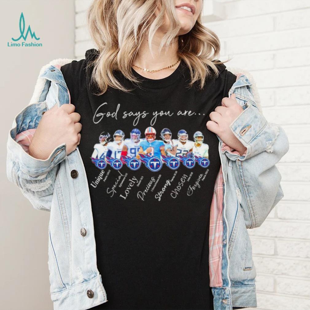 Tennessee Titans god says you are unique special lovely precious strong chosen forgiven shirt