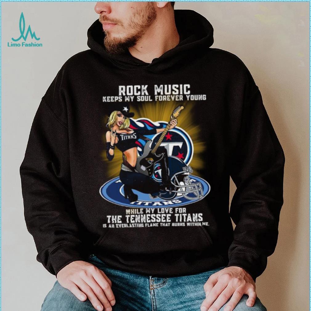 No! It’s much too early for Tennessee Titans rock music keep my soul forever young shirt . I want to enjoy this fall (although it seems that fall has decided not to visit us this year) and each holiday as it comes. One year, ages ago, I put up the Christmas tree on Thanksgiving weekend and by the time Christmas came around, all the decorations were dusty and I was sick of looking at it..lol. That was a good lesson. Christmas, for me, is sparkling snow, pine trees (not maples turning gold and red) and a very special time, especially if you have family (cherish them because some day they will be gone). It’s a time of selflessness and love and that “Christmas spirit” which is incredible which takes hold of you.