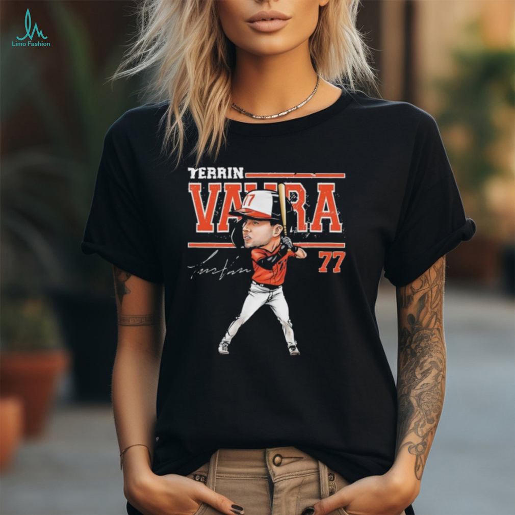 Terrin Vavra 77 Baltimore Orioles baseball MLB player signature cartoon shirt