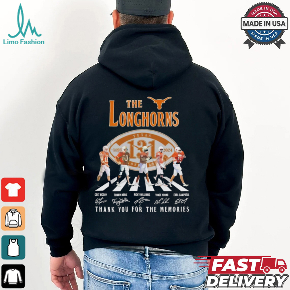Texas Longhorns 131th Anniversary 1893 2024 Abbey Road thank you for the memories shirt hoodie, tank top, sweater and long sleeve t-shirt
