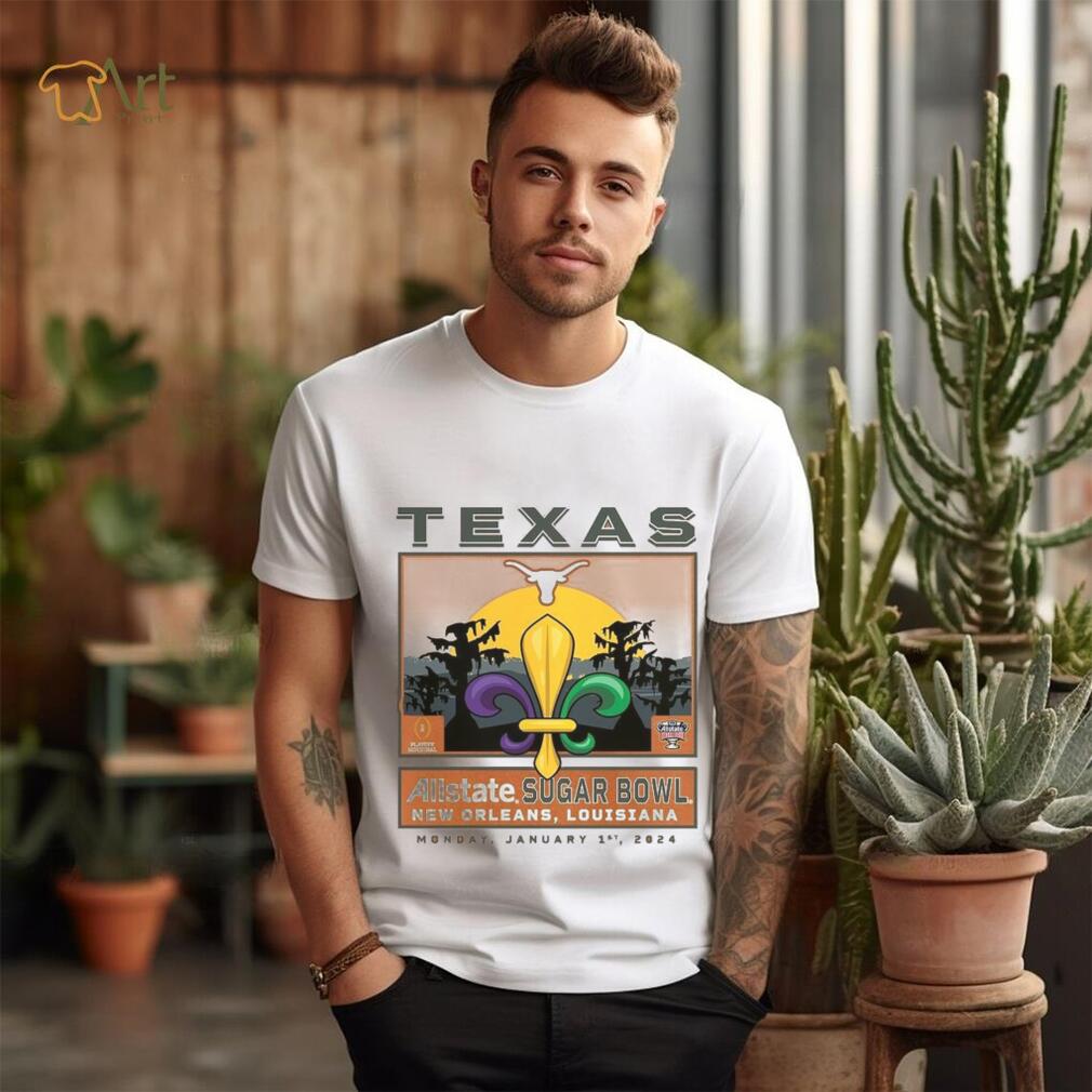 ()Spygate, 2007: New England Patriots get caught stealing signs from opponents` sidelines. This was actually not against the rules yet, so technically not cheating. They changed the Texas Longhorns College Football Playoff 2024 Sugar Bowl T Shirt after this to make it illegal. I won`t deny it`s a bit cheap (although you`re kidding me if you think the Patriots were the only team doing this), but not nearly as egregious as:Deflategate, 2014: During the AFC Championship Game, the New England Patriots were found to have several footballs in their arsenal that were below the legal minimum. Tom Brady had to testify before Congress and was suspended for four games the following season, despite the fact that the Colts, the team that Patriots beat in the game 45–7, noted that they didn`t lose because of the Texas Longhorns College Football Playoff 2024 Sugar Bowl T Shirt, and that the Colts had deflated footballs as well. For context, the weather was super icky that game, and it`s probable that both teams deflated the footballs to grip them better.