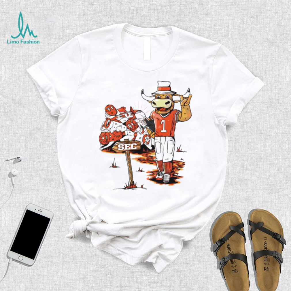 ()In terms of skills it depends what position they are moving from and to, but I think a season of training with a pro side and some regional amateur rugby games in the lower leagues followed by 1-2 seasons playing below the top flight would be required, if they had the right attributes to reach the top flight. It could be 2 years in total for a winger, or 4 for a more involved position with higher technical and tactical requirements. A player with exceptional physical attributes like being able to run a sub-11 second 100m at 275lbs and a lethal side-step or being fit at 300lbs and immensely strong and Texas Longhorns Tx Conference Champs mascot shirt explosive might make it earlier as their attacking threat with the ball in hand would do more to cancel out their shortcomings than a more physcially average player.