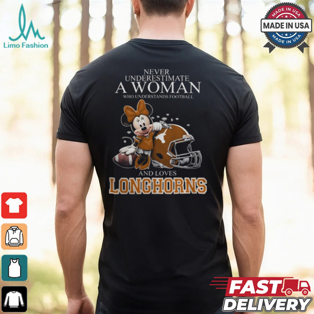 Texas Longhorns x Minnie Mouse Never Underestimate A Woman Who Understands Football And Loves Shirt hoodie, tank top, sweater and long sleeve t-shirt