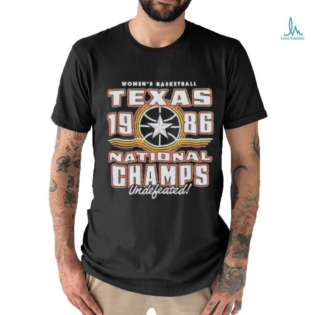 Texas Women’s Basketball 1986 National Champs T Shirt. Categories of this T-shirt is teejeep, Texas Women’s Basketball 1986 National Champs T Shirt from Dadyshirt ✓ Unique designs ✓ Large assortment ✓ Comfortable ✓ High-quality ✓ Easy to care for ✓ Available in a range of colours and styles for men, women ✓ Shop now ✓