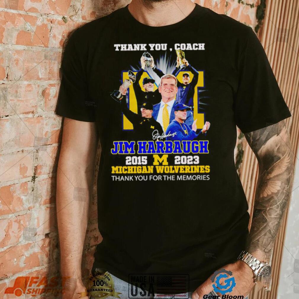 Thank You Coach Jim Harbaugh 2015 – 2023 Michigan Wolverines thank you for the memories signature shirt