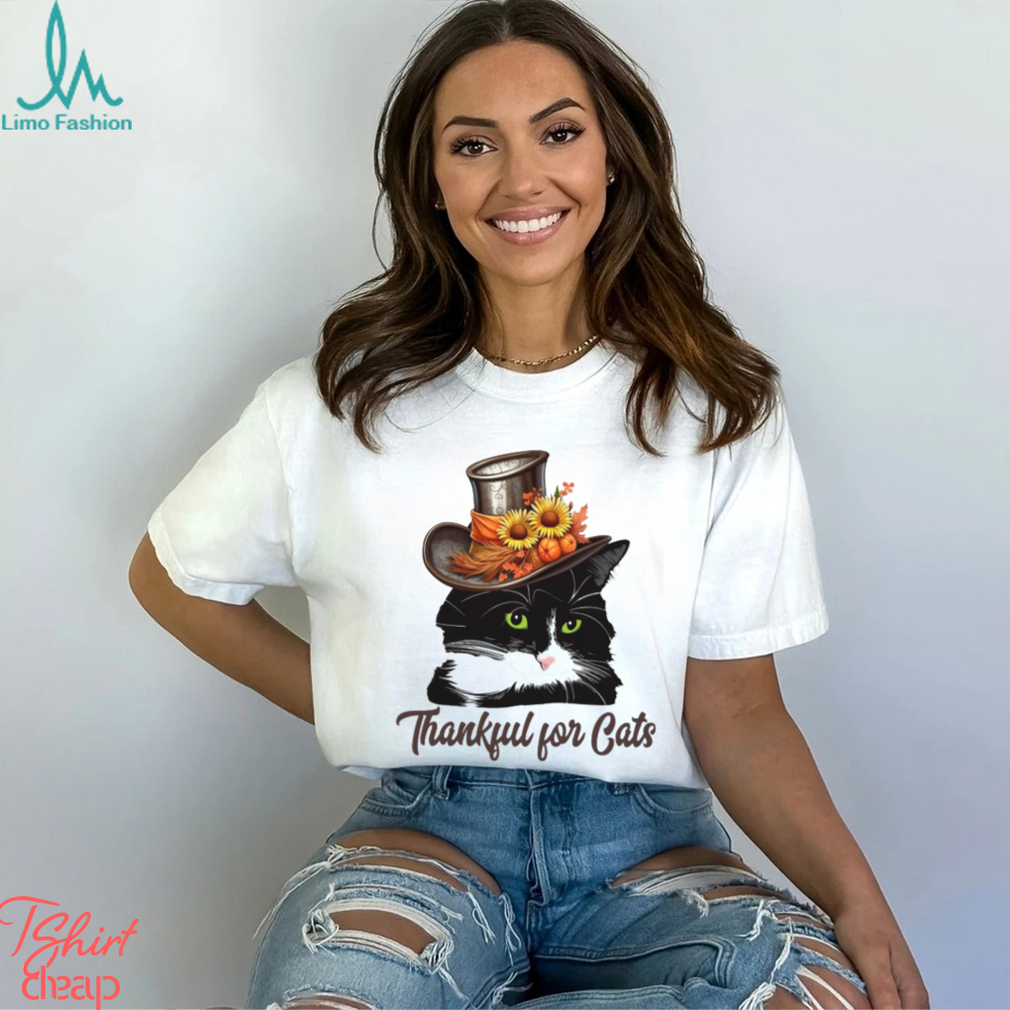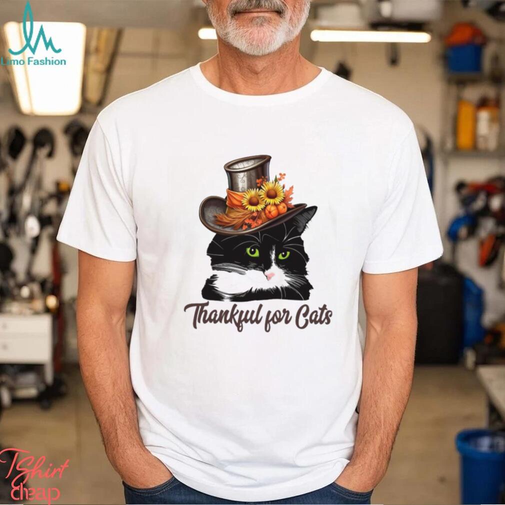 ()Thankful For Cats Cat With Hat Flowers Pumpkins Autumn Leaves Cute Thanksgiving Black Cat Classic T Shirt hoodie, tank top, sweater and long sleeve t-shirt