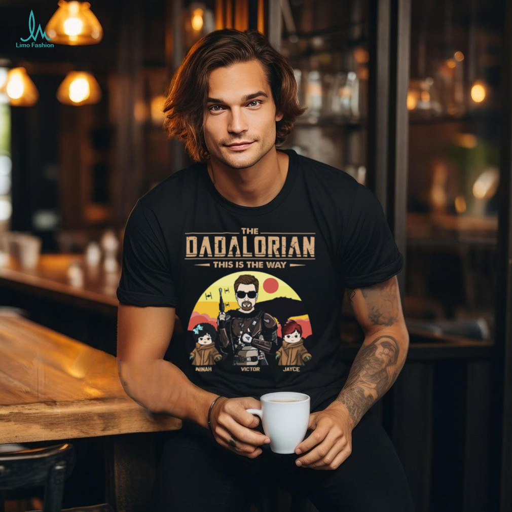 You can be happy in the midst of the biggest The Dadalorian This Is The Way Personalized Shirt Custom Tatooine Background With Kids shirt . Just make peace with the concept that the way you feel no longer reflects what’s going on around you. Waltz to your own tune, like one of those dudes on their skateboards, who wear headphones and have clearly detached themselves. Of course continue to make only supremely rational choices and keep dedicating yourself to all things that help build a successful life, but you are no longer dependent on having finished before you are allowed to be happy. I’ve been at it for almost ten years now, and it has been a triumph.
