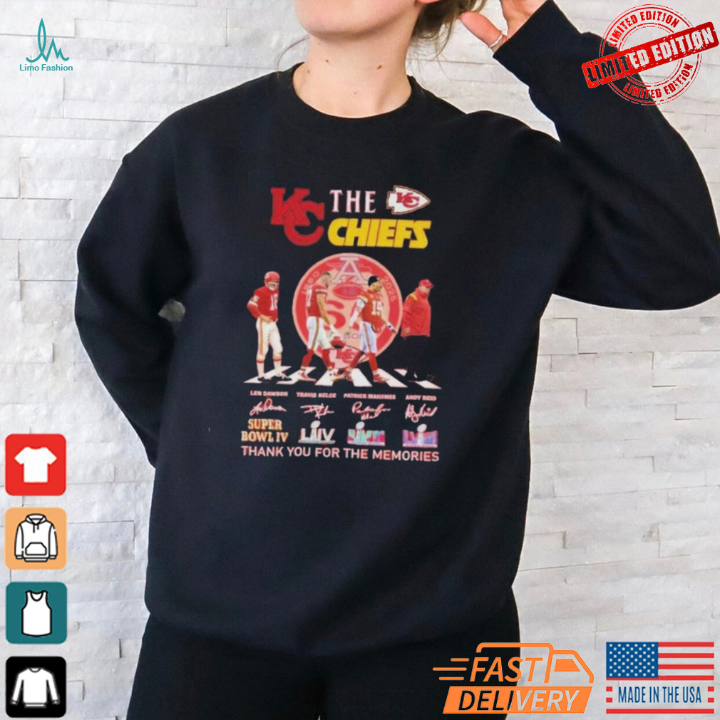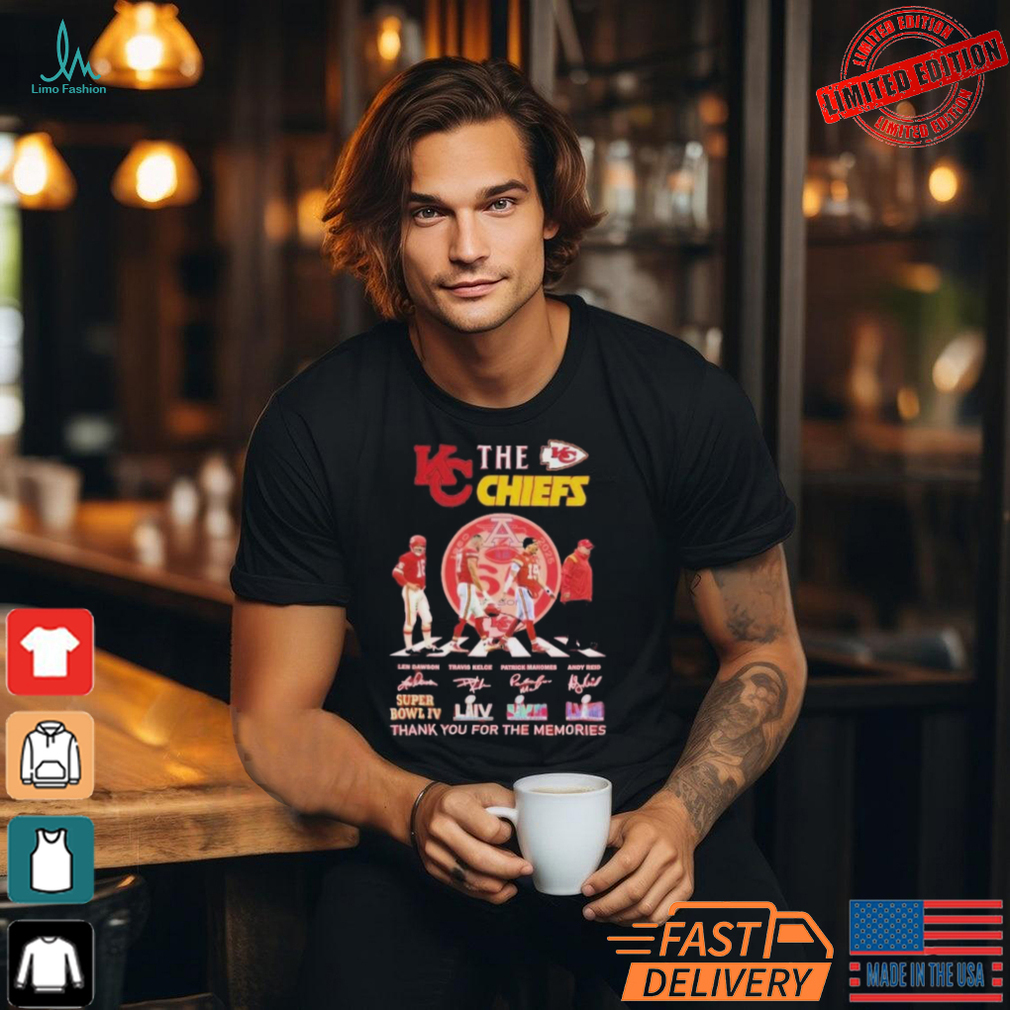 Yeah, sure, an agency The Kansas City Chiefs Signatures Thank You For The Memories T Shirt is allotted less than 2% of the annual budget and who has yet to send humans beyond earth orbit, (no, Apollo doesn’t count, the Saturn V was incapable of achieving escape velocity, in fact, it wouldn’t have made it to the moon if not for the moons gravity pulling it in), is somehow able to hide a species capable of interstellar travel…