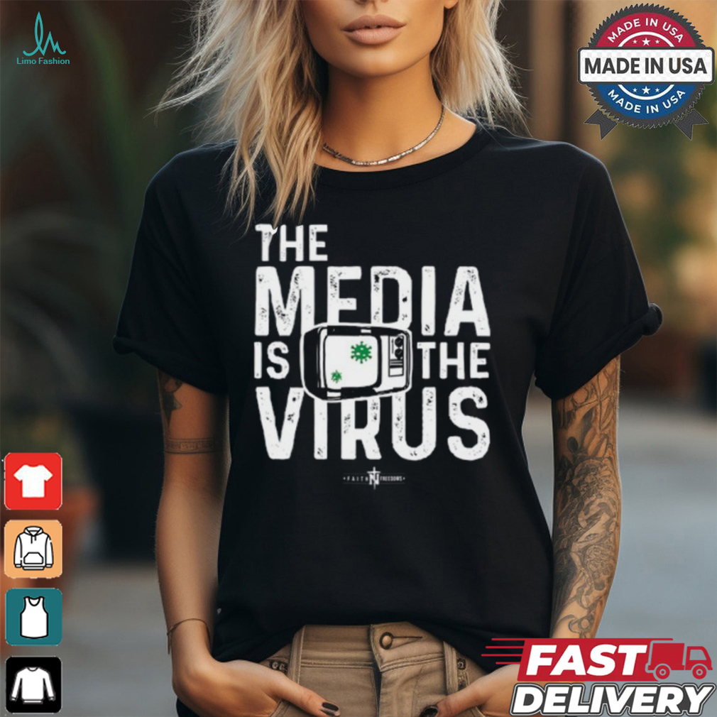 It wouldn’t surprise me if The Media Is The Virus shirt is hiding evidence that can lead us to alien life. NASA is so twisted, the employees can swallow nails and spit out corkscrews. I don’t trust NASA anymore because they don’t launch people into space, on the moon, and I heard they don’t even launch space rockets anymore. In my opinion, I thought NASA was made for the development of astronauts and for them to eventually get launched into space or the moon.