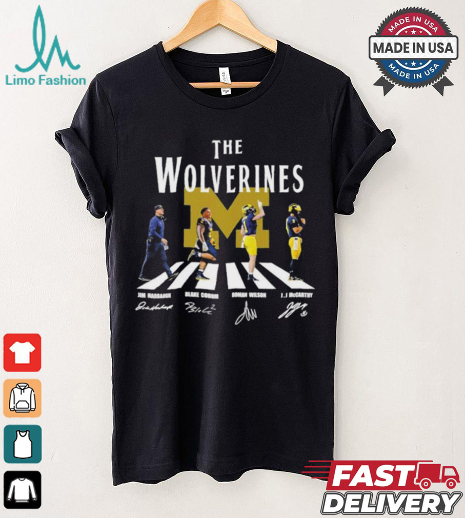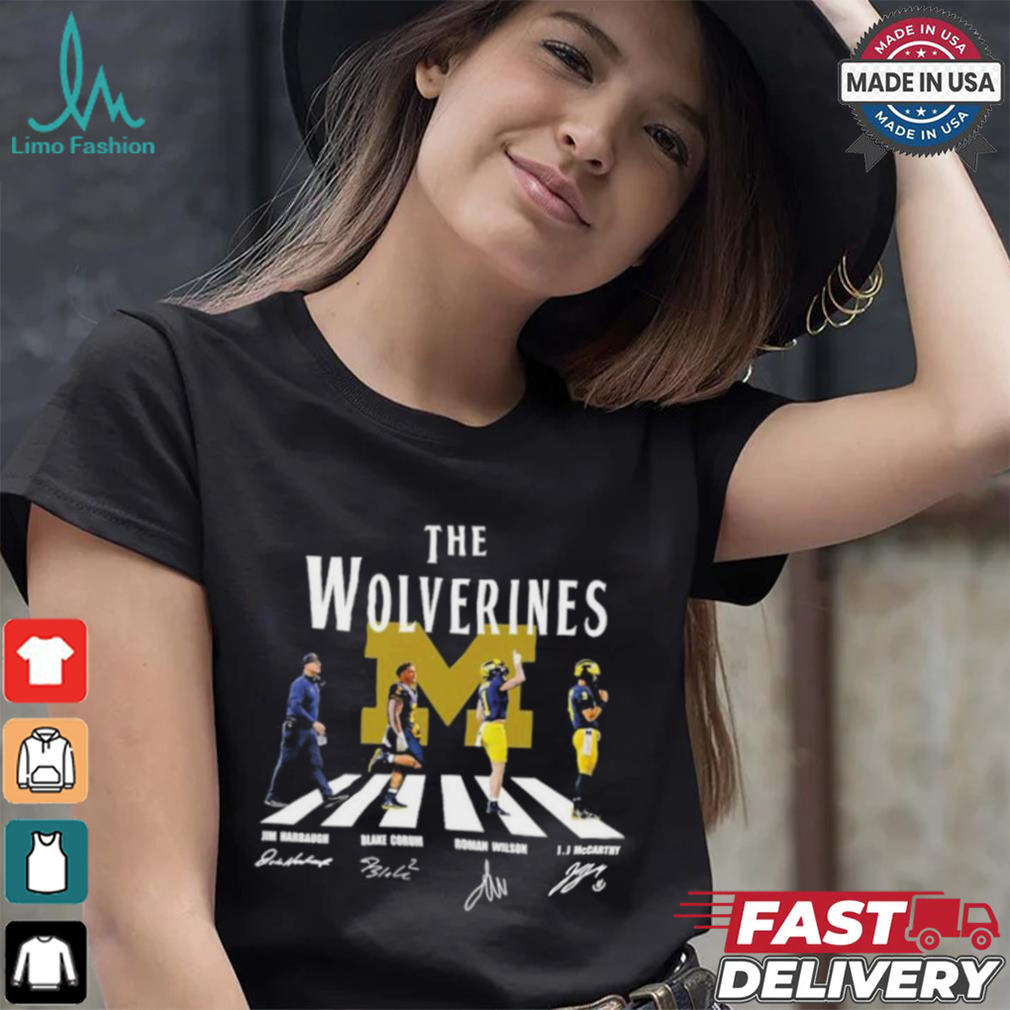 The Michigan Wolverines Abbey Road Jim Harbaugh Blake Corum Roman Wilson And Jj Mccarthy Signatures Shirt