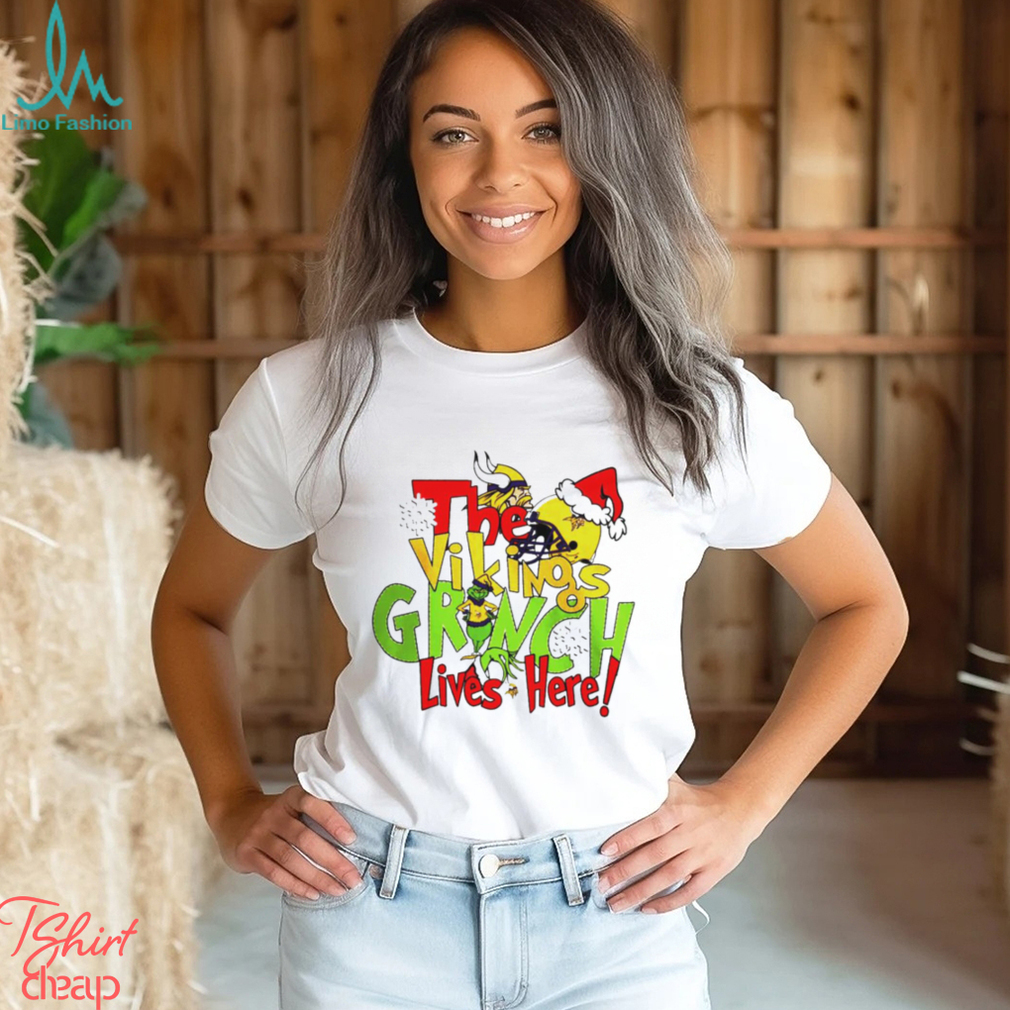 The Minnesota Vikings football Grinch lives here Merry Christmas shirt