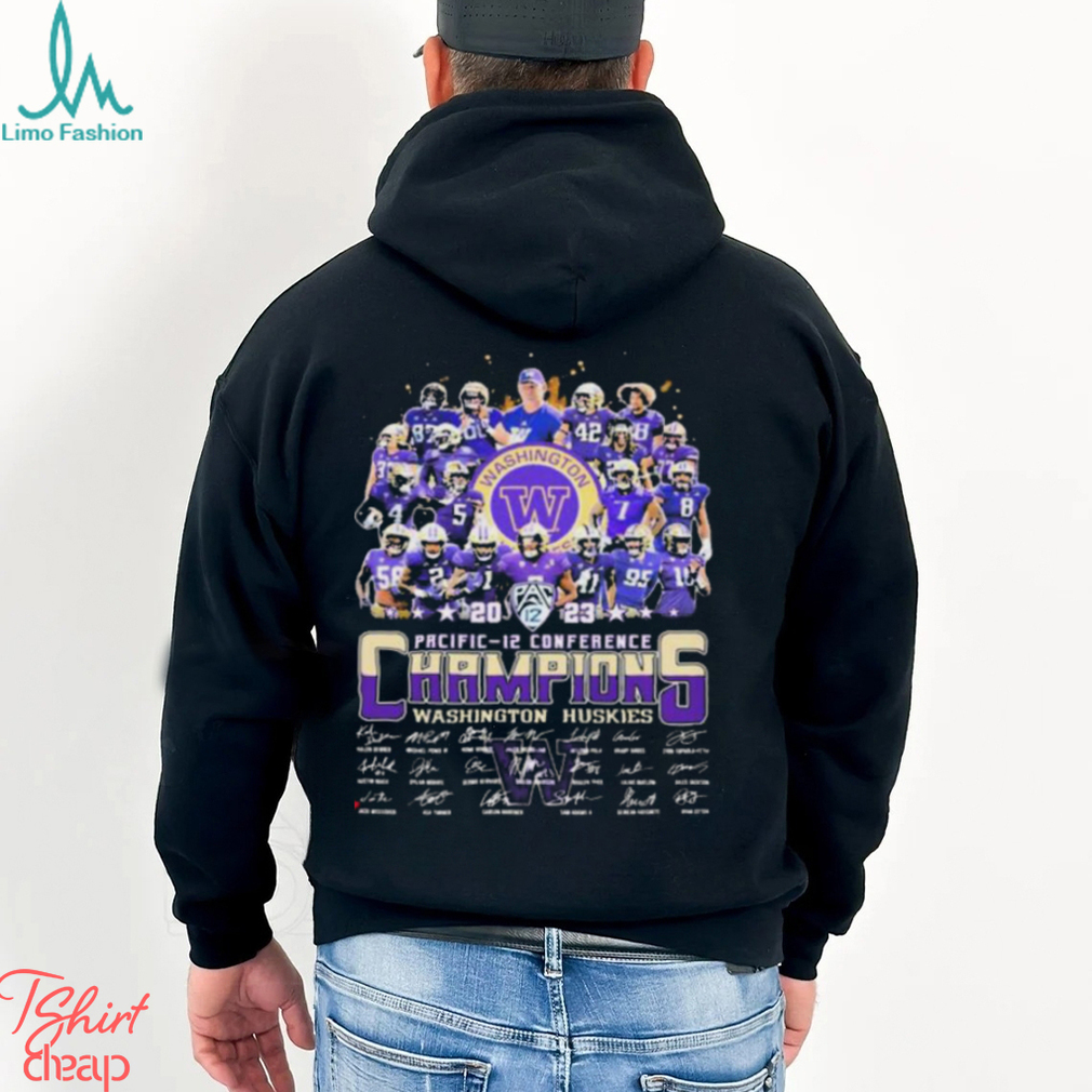 ()The Pacific 12 Conference Football 2023 Washington Huskies Team Champions Signatures T Shirt hoodie, tank top, sweater and long sleeve t-shirt