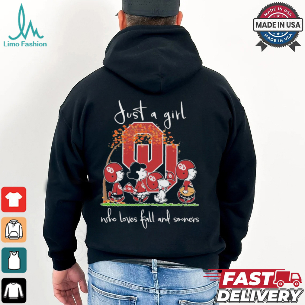 ()The Peanuts Walking Just A Girl Who Love Fall And University Of Oklahoma Shirt hoodie, tank top, sweater and long sleeve t-shirt
