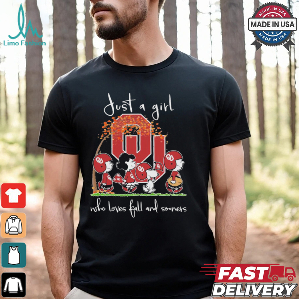 The Peanuts Walking Just A Girl Who Love Fall And University Of Oklahoma Shirt