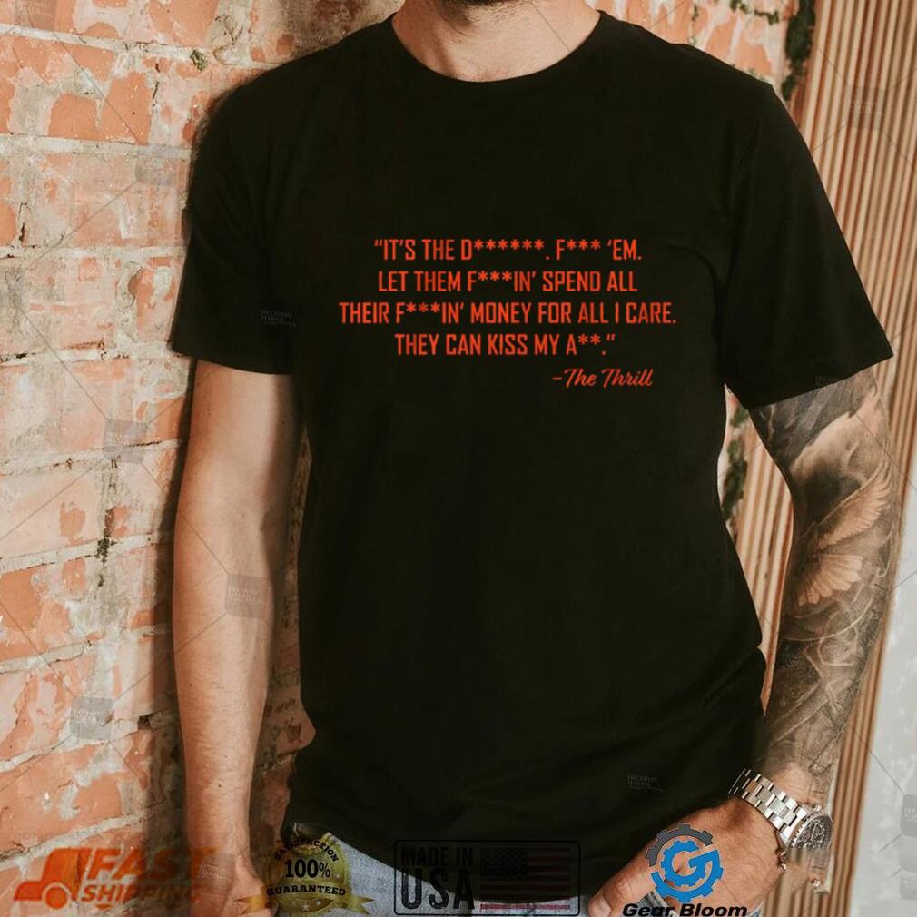 Geography. Pick the local team. If you are in say Miami, congratulations you can be a Dolphins fan and if you want to support teams across several levels, then the Dolphins for the NFL, Miami Hurricane among the power college programs and Florida International Panthers in the so-called Group of 5. If you are in an area not near an NFL team pick a The Thrill Quote Shirt college and could even find enjoyment following a small regional team that plays in Division II or III or Division I FCS.