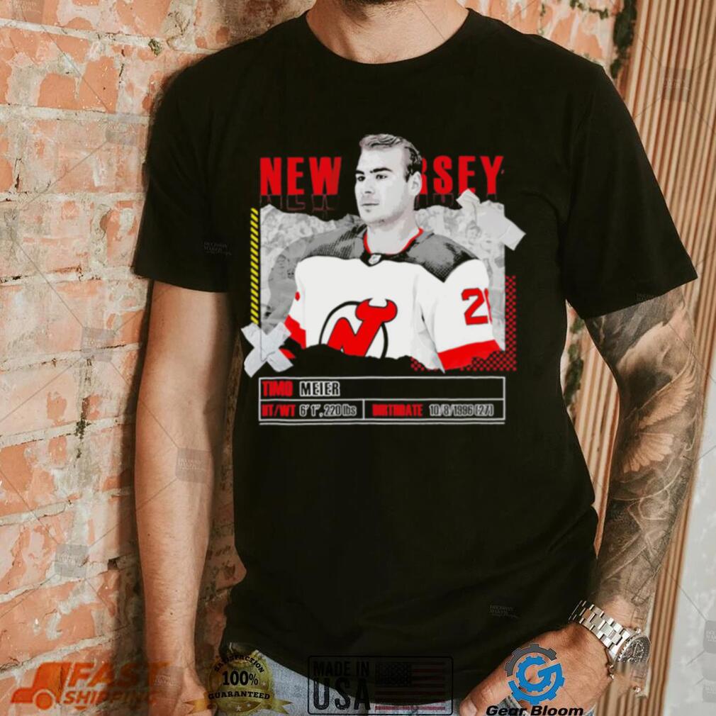 Timo Meier New Jersey Devils ice hockey player information paper shirt