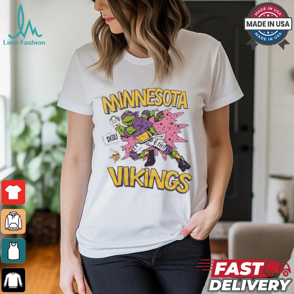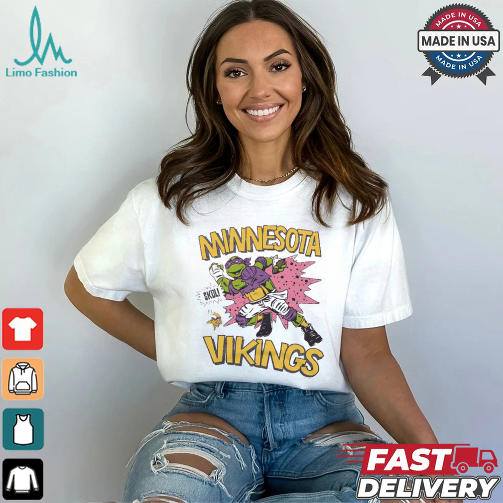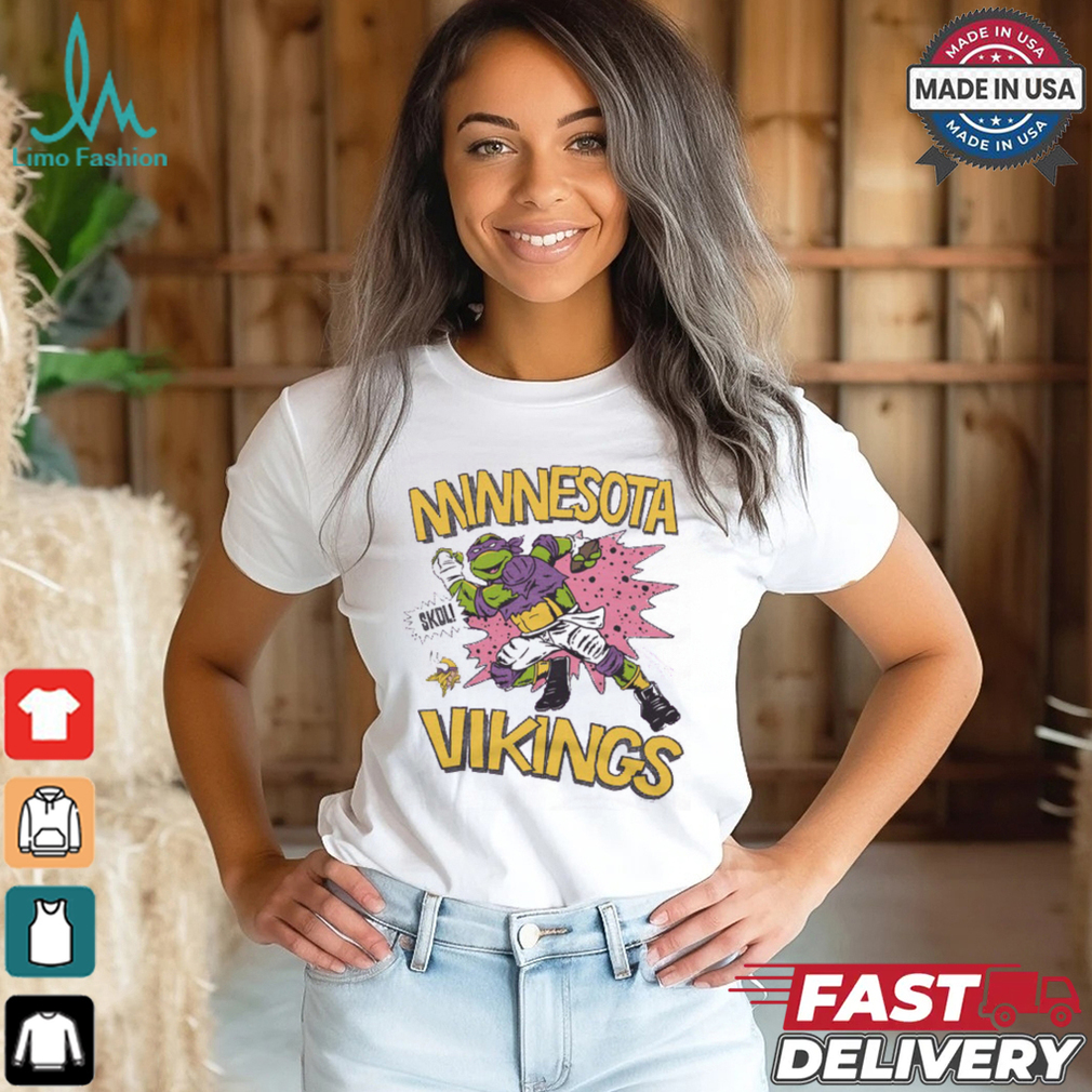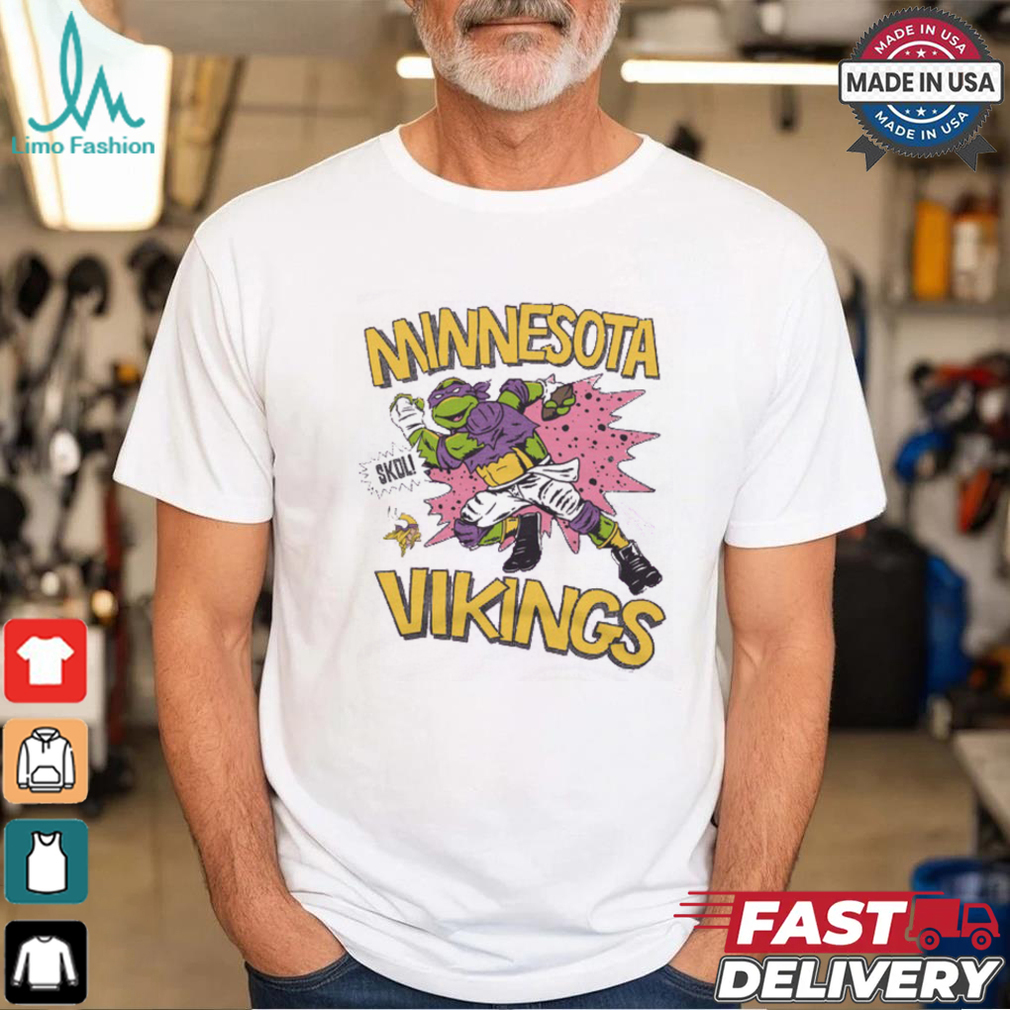 If you’re flying out of China before Chinese New Year (“spring festival”) and flying back to China after Chinese New Year, you can probably land yourself a TMNT Donatello x Minnesota Vikings Shirt cheap ticket. The other way around, no (a lot of overseas families travel to China during this time while the vast majority of Chinese nationals travel only domestically during this time). This is roughly similar to the reason why it’s not too difficult to find cheap international journeys from the USA around Thanksgiving, as long as you don’t have domestic segments in your itinerary. Christmas time is likely to be expensive in any direction anywhere unless you fly on the day of Christmas or Christmas Eve, or after western New Year. That said, book your tickets early — it’s always hard to predict these kinds of things and you never know what you’ll actually find out there in terms of tickets; every now and then you might stumble across something cheap especially if you really pay close attention.