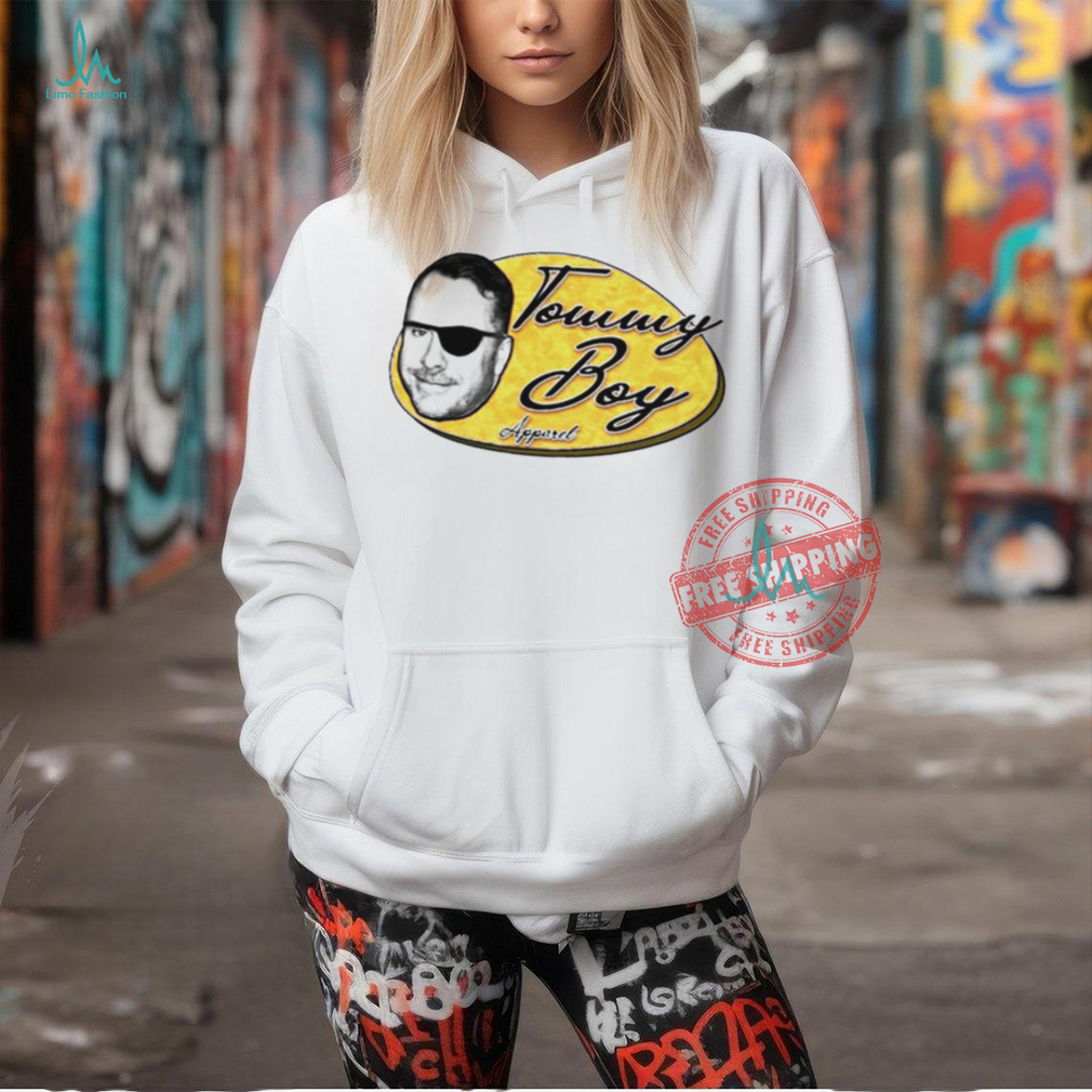 I told her, Well, I just I need to Tommy Boy Apparel shirt this one who chose me. She gasped, as the kitten was still holding on to me,patiently waiting. He let the girl get him from the cage and then climbed into my arms and looked at me as if to say, “Well? Come on, let’s go home!” I knew then I was beaten! Less than two minutes looking at cats only to be chosen. Gonzo is a dork and also a very good boy. He was fully accepted by the two adult cats in less than a week. He causes chaos daily in the house. I would not trade him for anything! I think he was so smart to chose the biggest pushover in the room! Below of pictures of him as a kitten and now as an 18 pound force of nature.