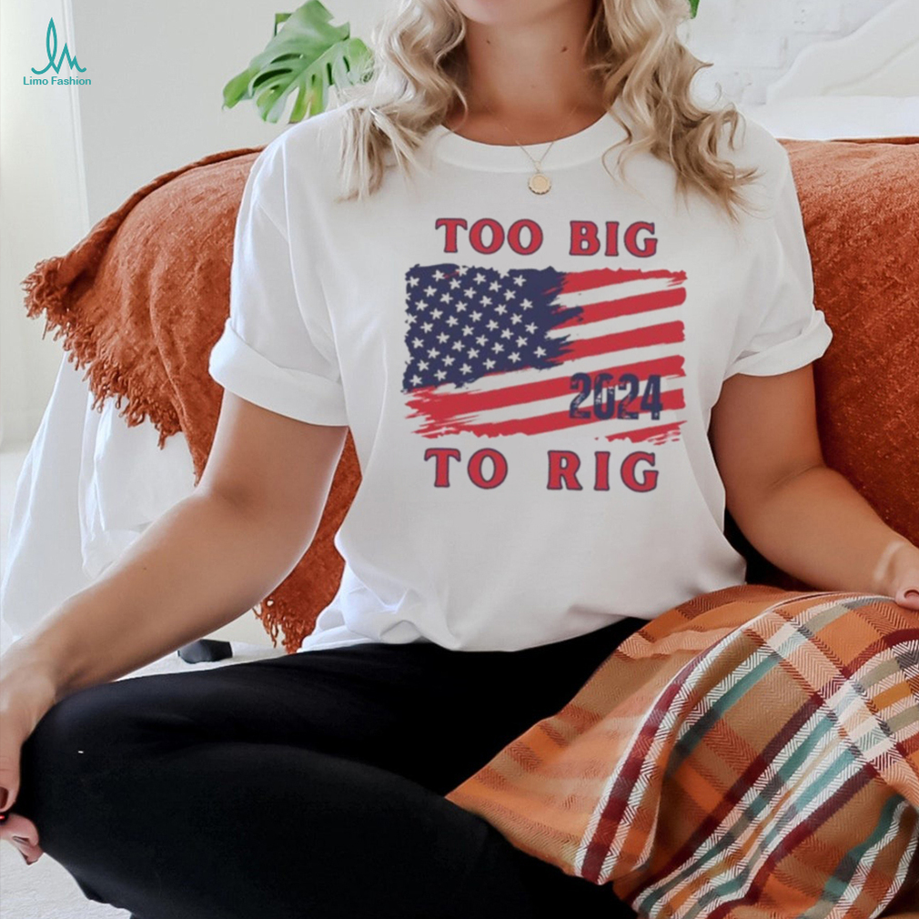I used to have a mischievous little trouble maker Too big to rig American flag US elections shirt Denney. I named her after “Dennis the Menace”. She would take my keys out of my purse so I couldn’t leave the house. She would hide under the edge of the bed and swat the dogs as they walked by. She figured out how to jump up and grab a door knob to open a door. She learned how to hook her front paws over the top or side of the kitchen cabinet doors and walk backwards so she could open and get inside of them. We finally had to just install child-proof latches on the kitchen cabinets.